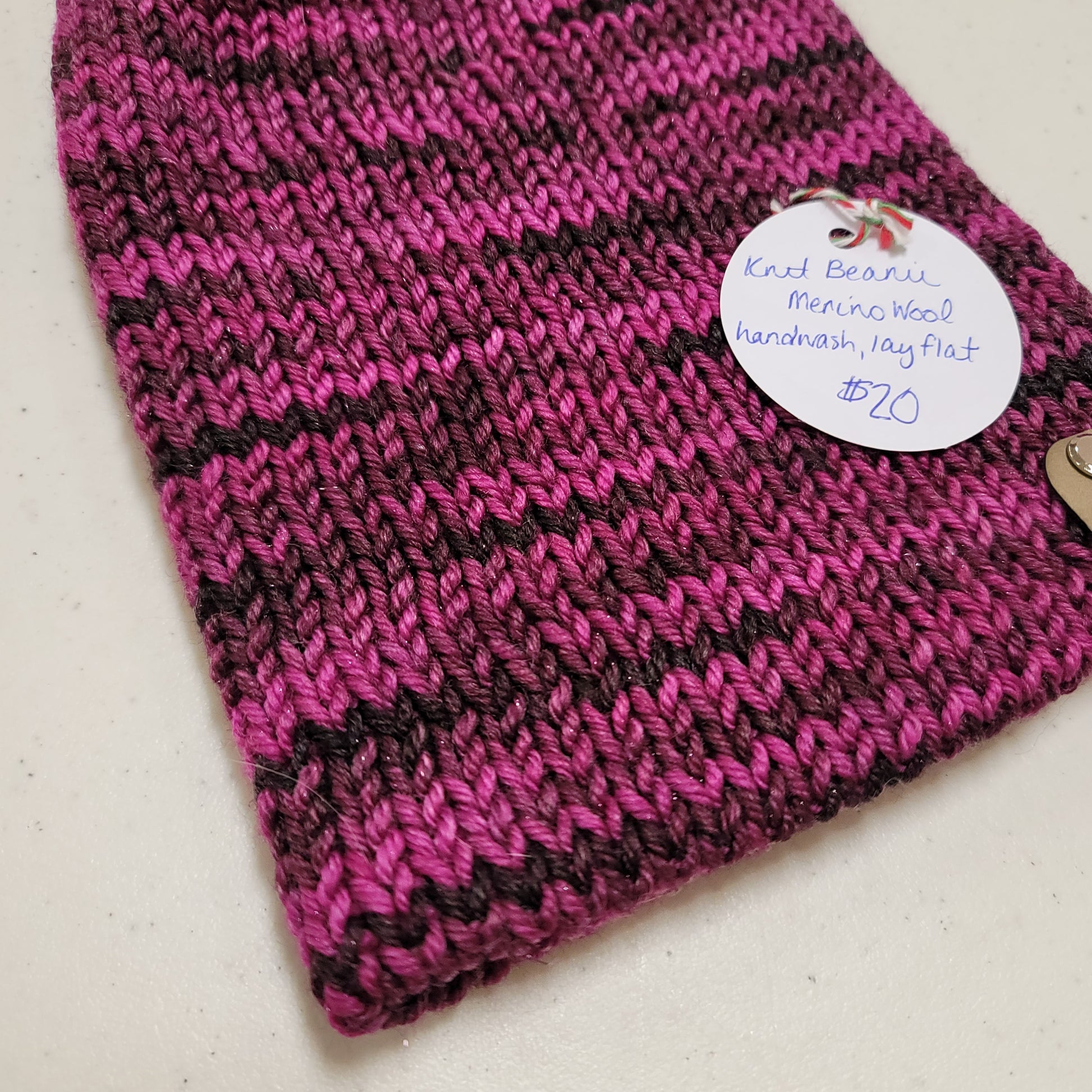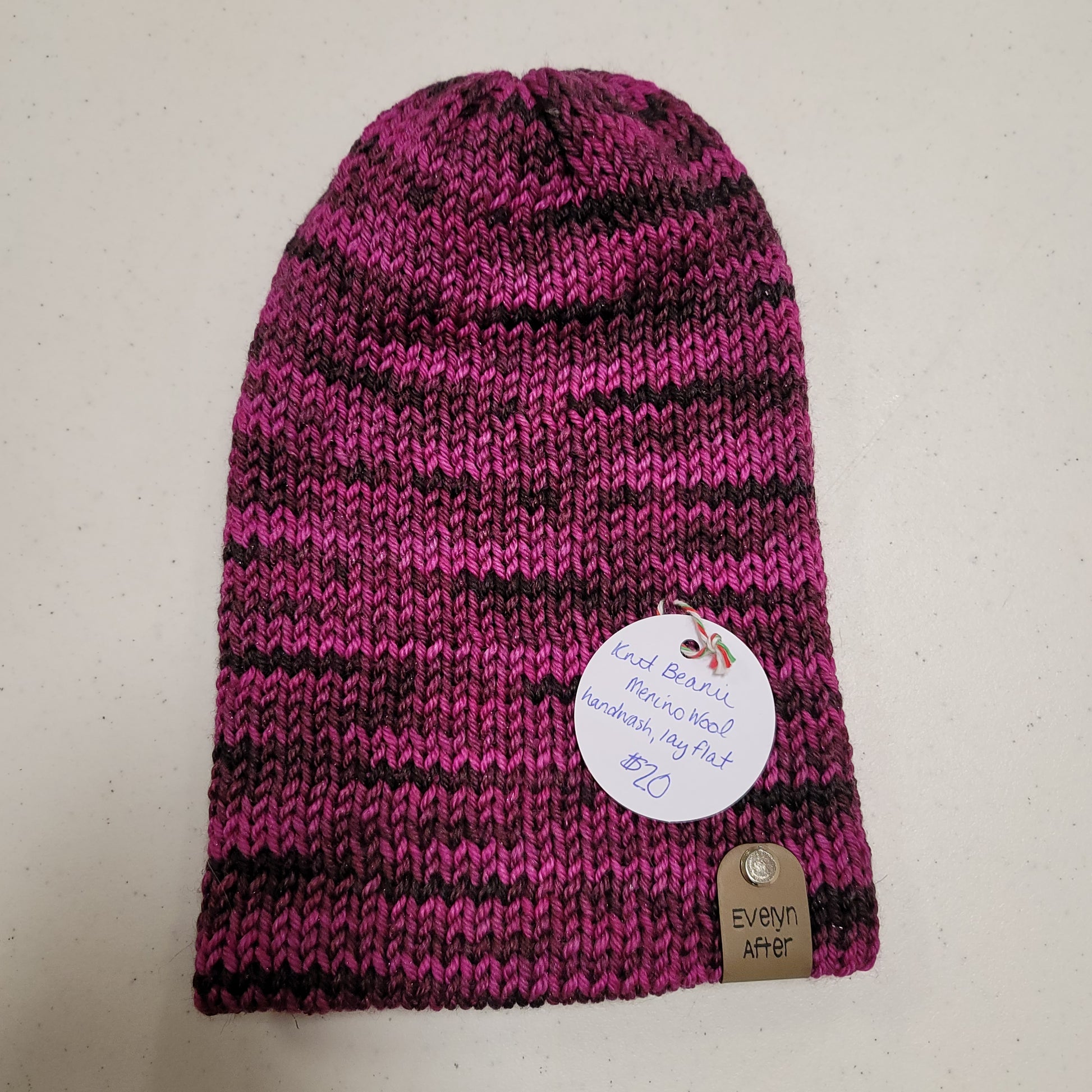 Slouchy style knit beanie. Circumference measures 14 inches with lots of stretch. Measures 9.5 inches long.
