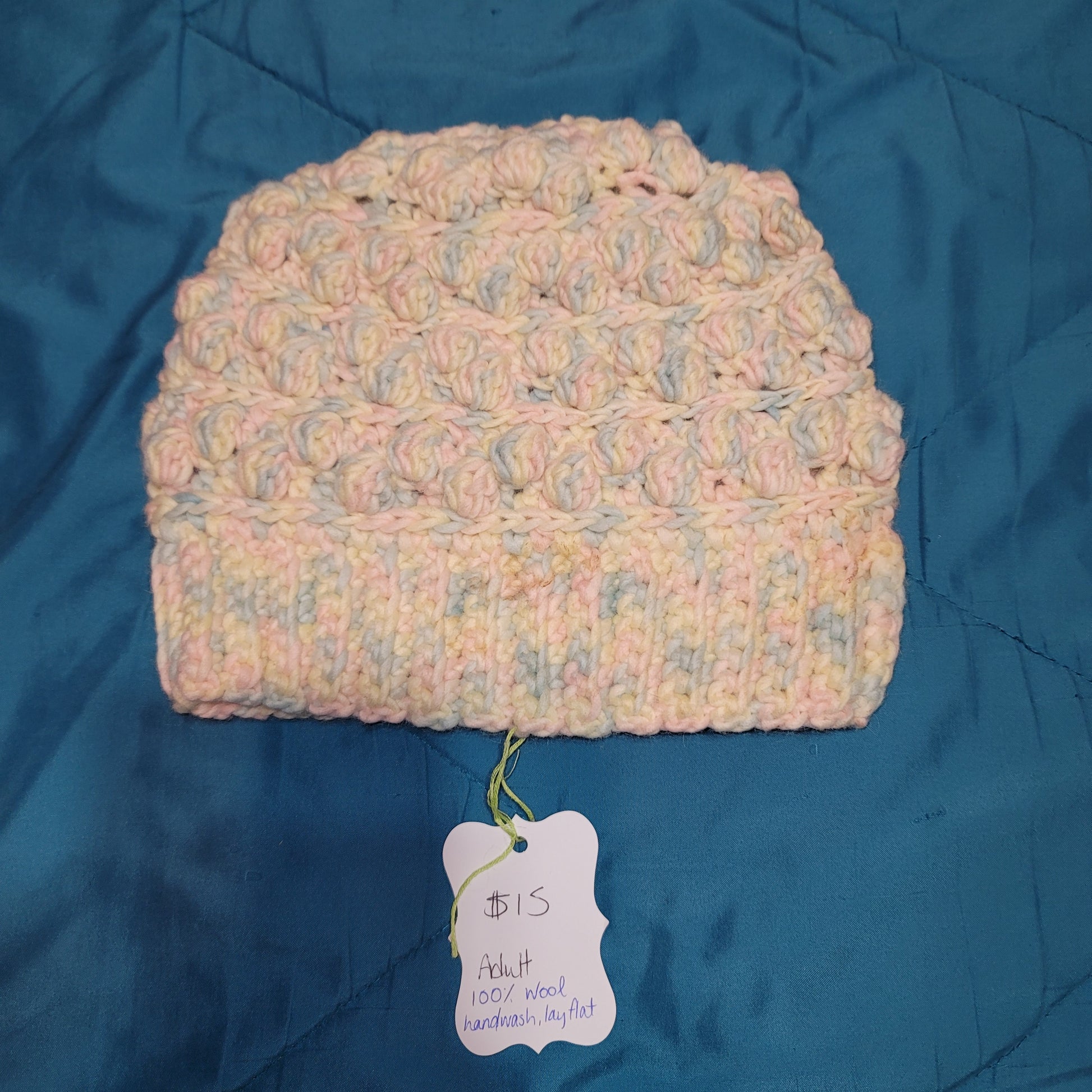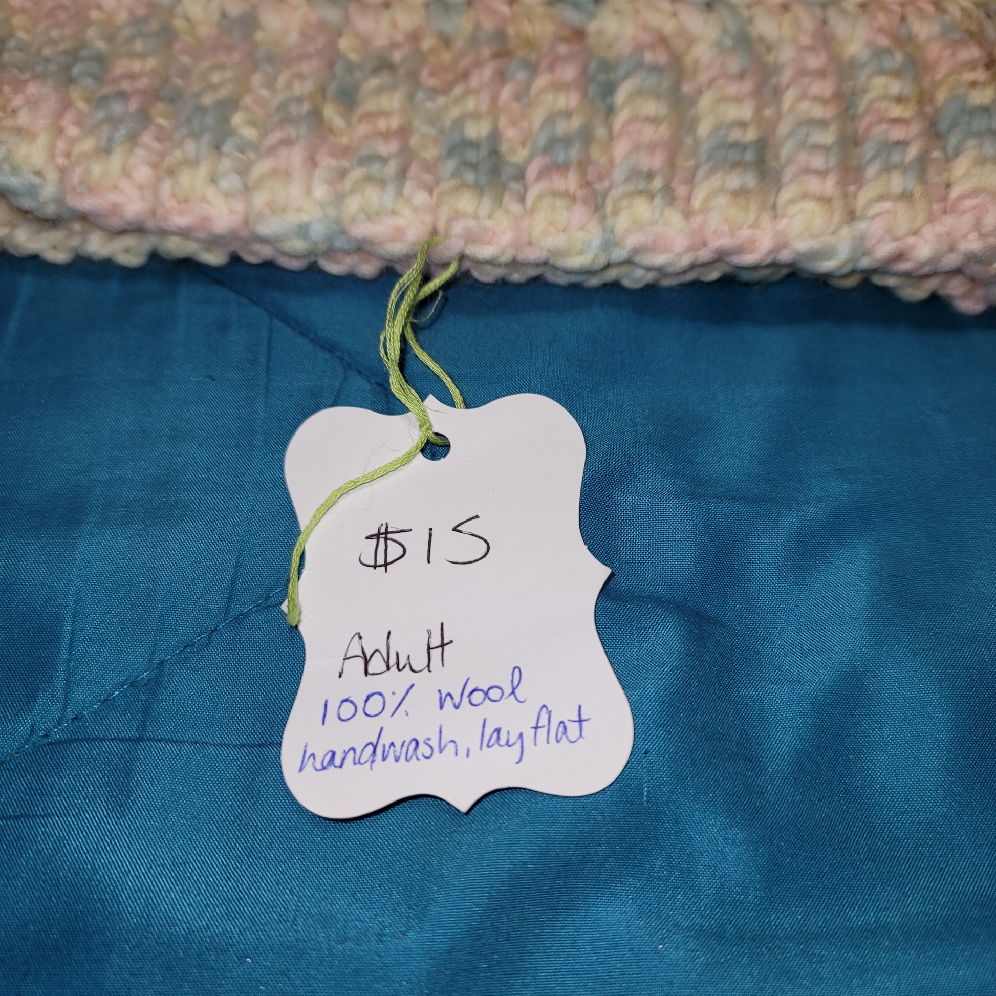 Hat measures 8.5 inches tall and has an 18 in circumference at the brim. 2 inches of ease for stretch.