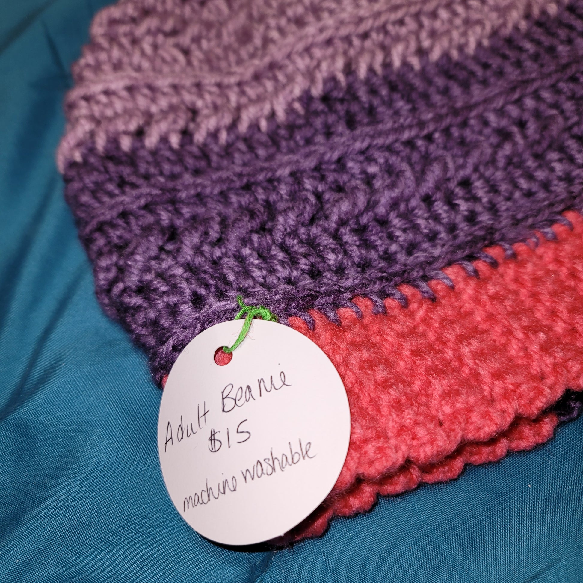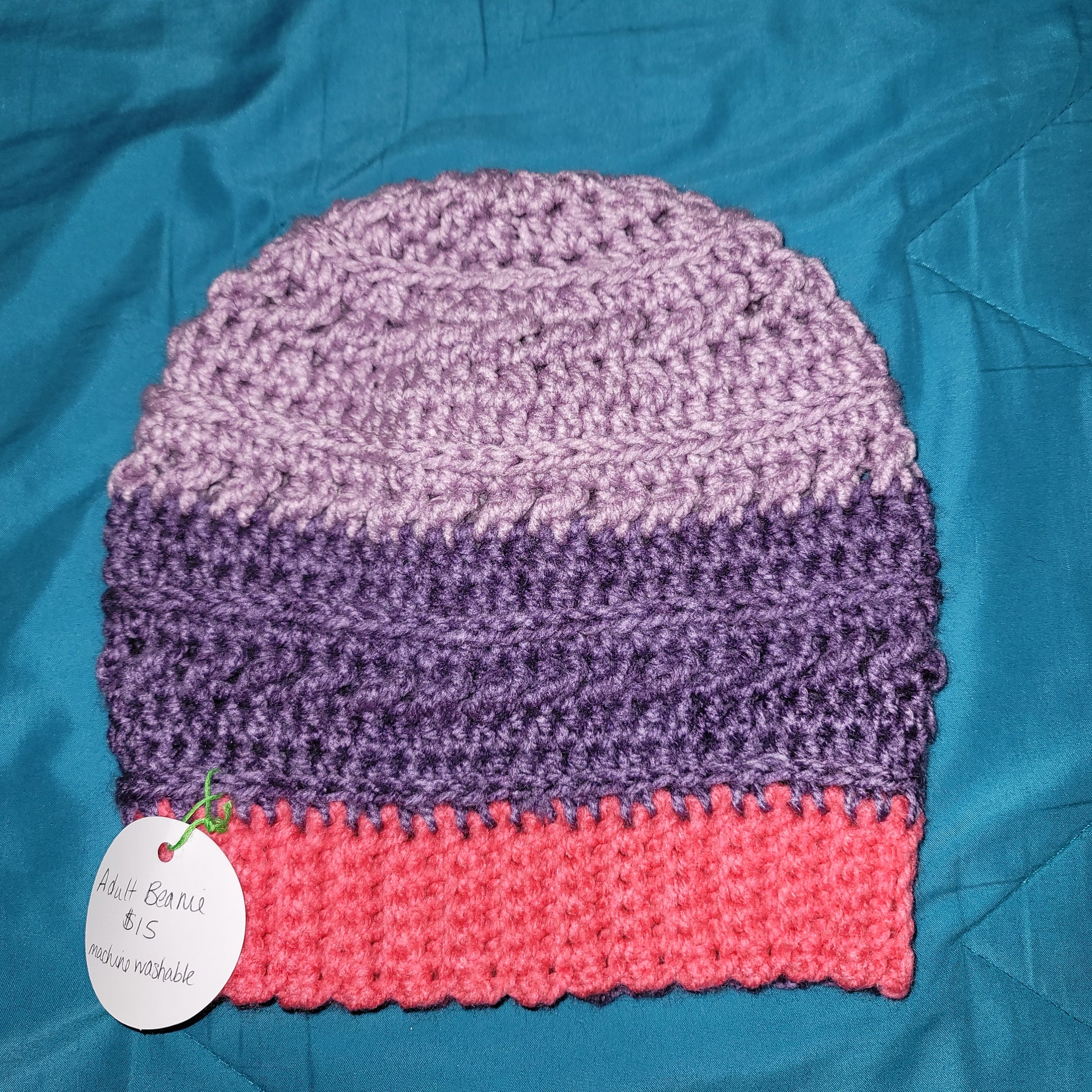Hat measures 8.75 inches in height and has a 17 inch circumference at the brim. 2 inches of ease for stretch.