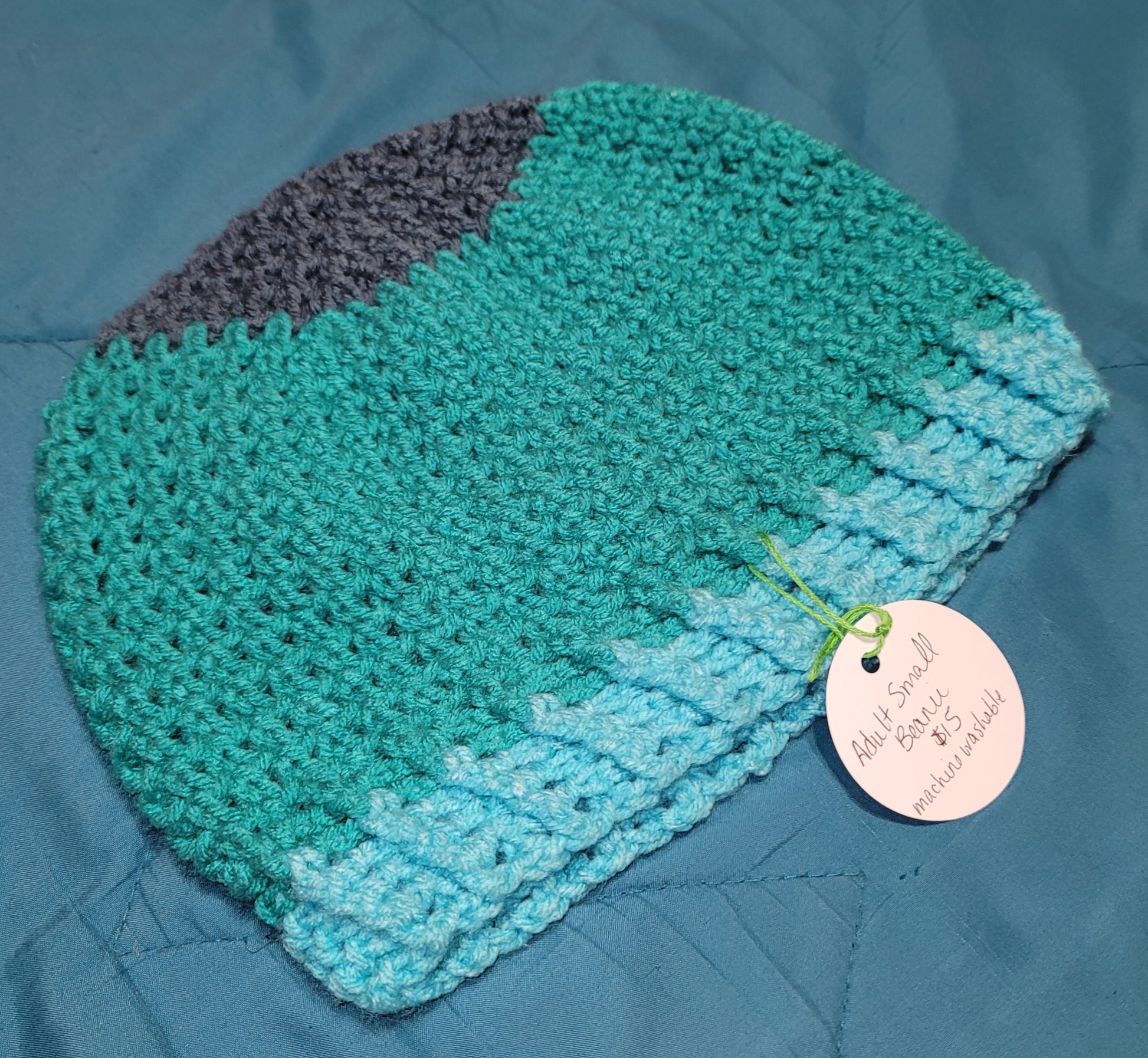 Beanie measures 7.75 inches tall and has a 20 in circumference at the brim. 2 inches of ease for stretch.