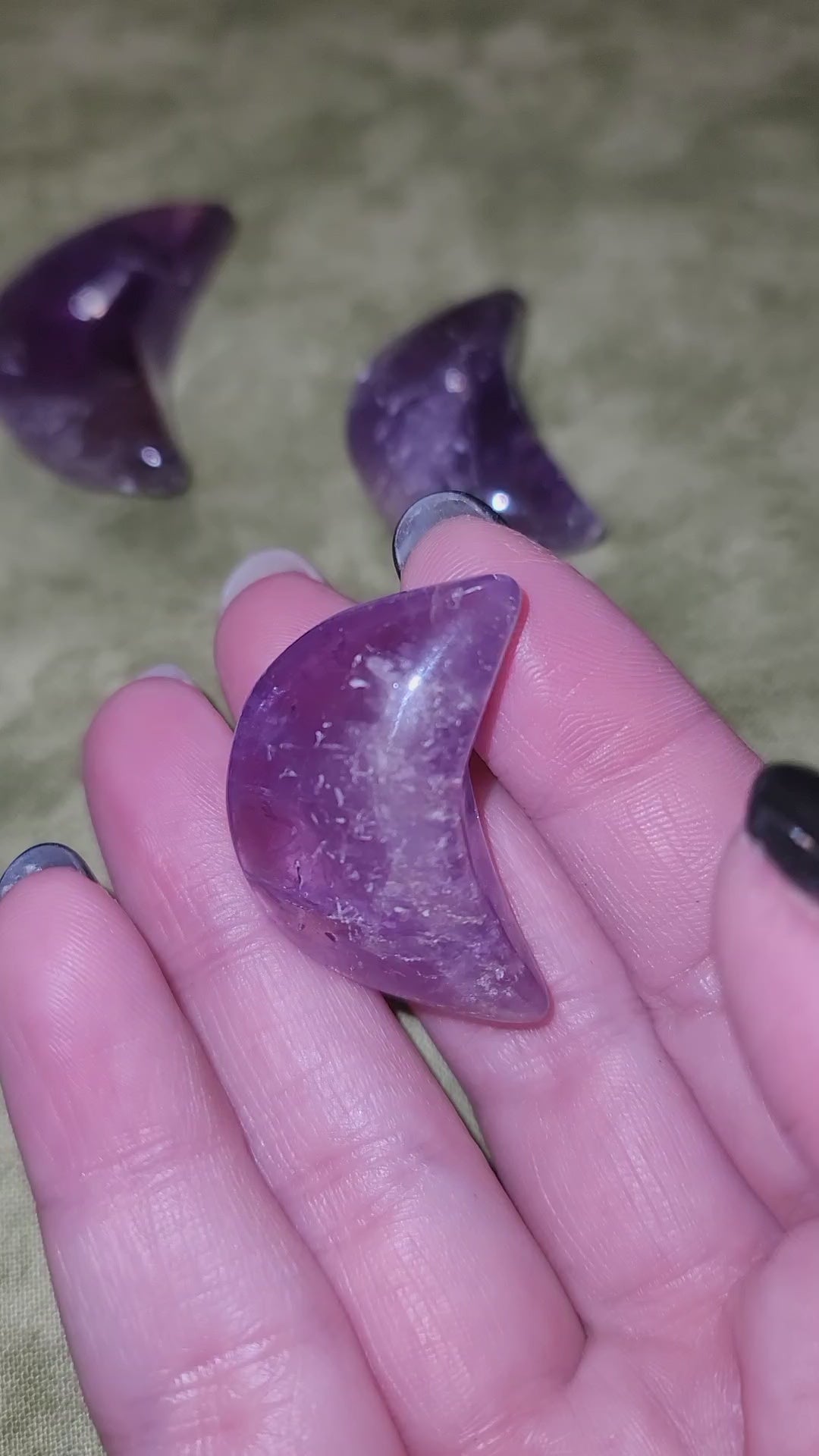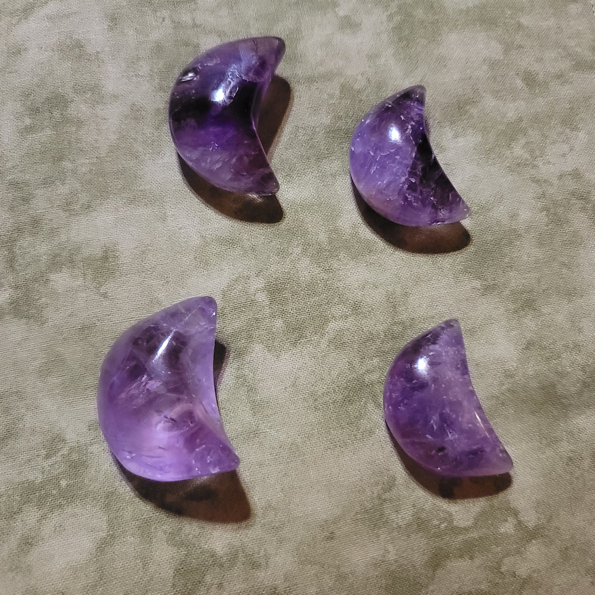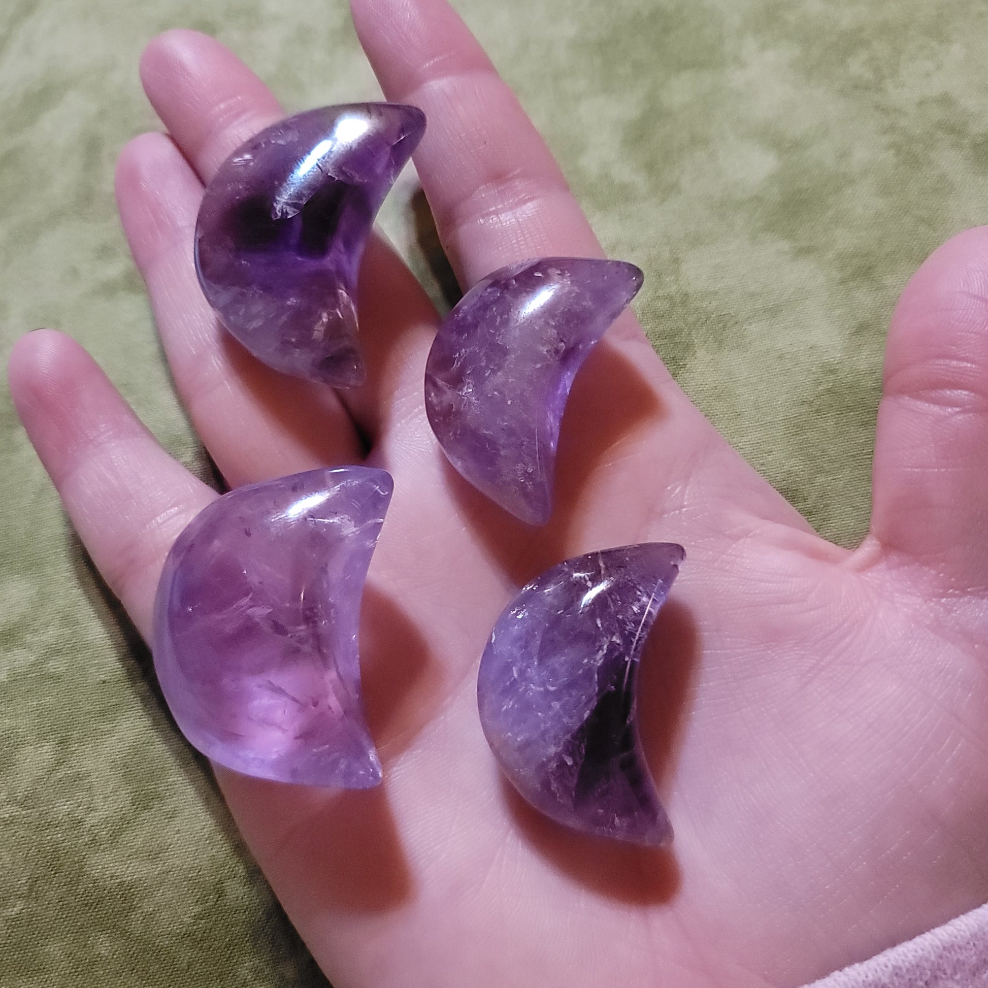 Small amethyst moon with plenty of rainbows. Nice clear purple color.