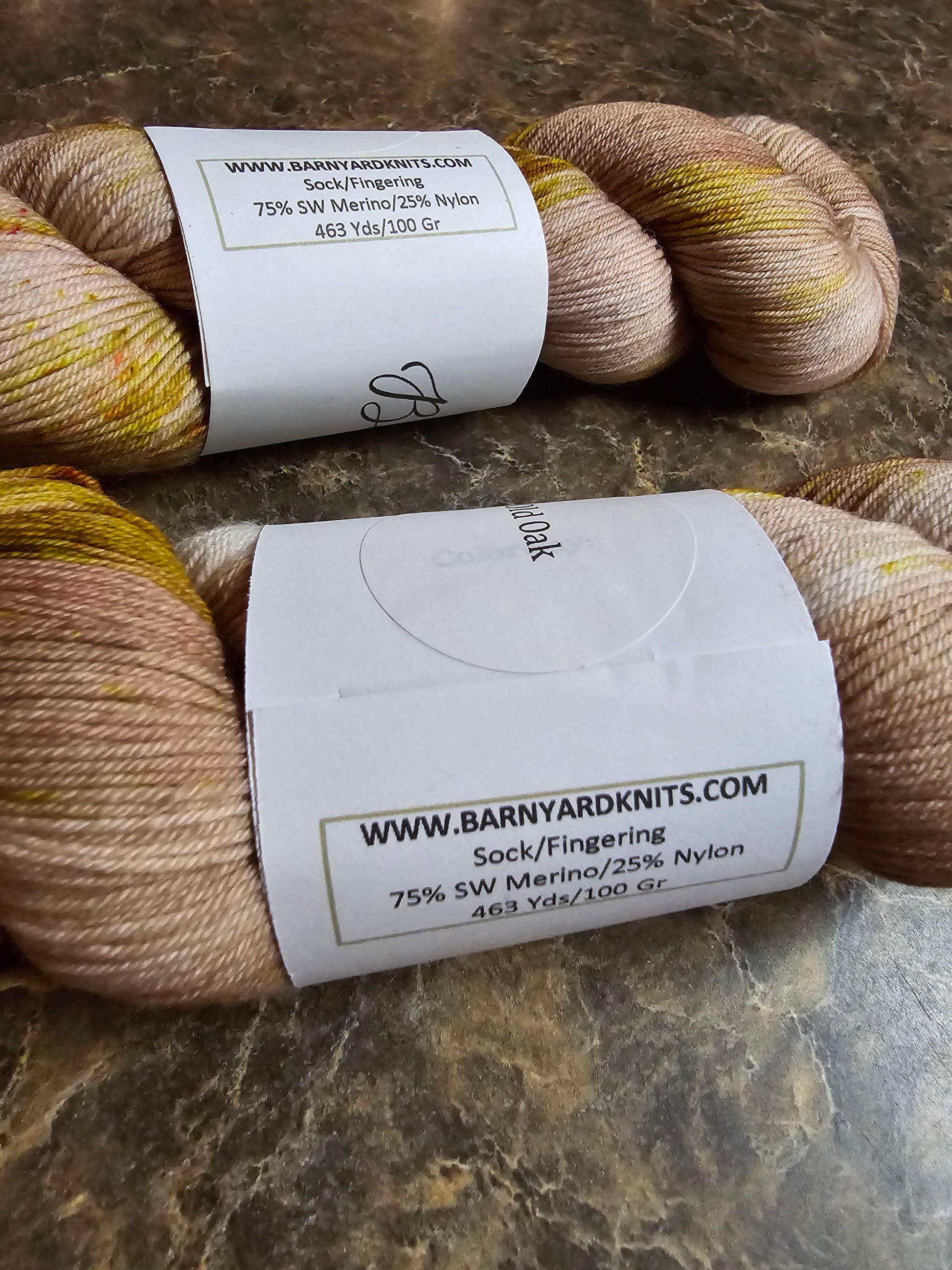 Yarnbase: 75/25 Superwash Merino/Nylon. 100g per skein, 463 yards.