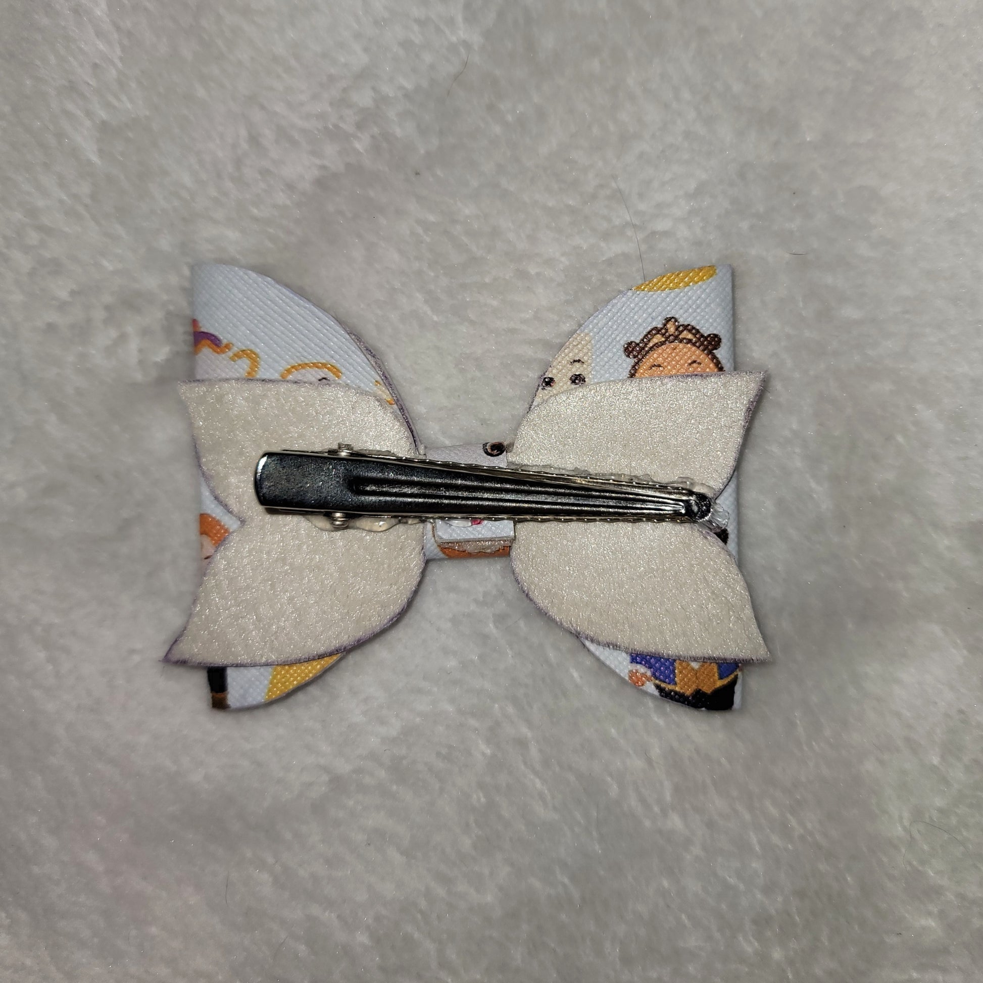 Beauty & the Beast print faux leather medium bow secured on an alligator clip.