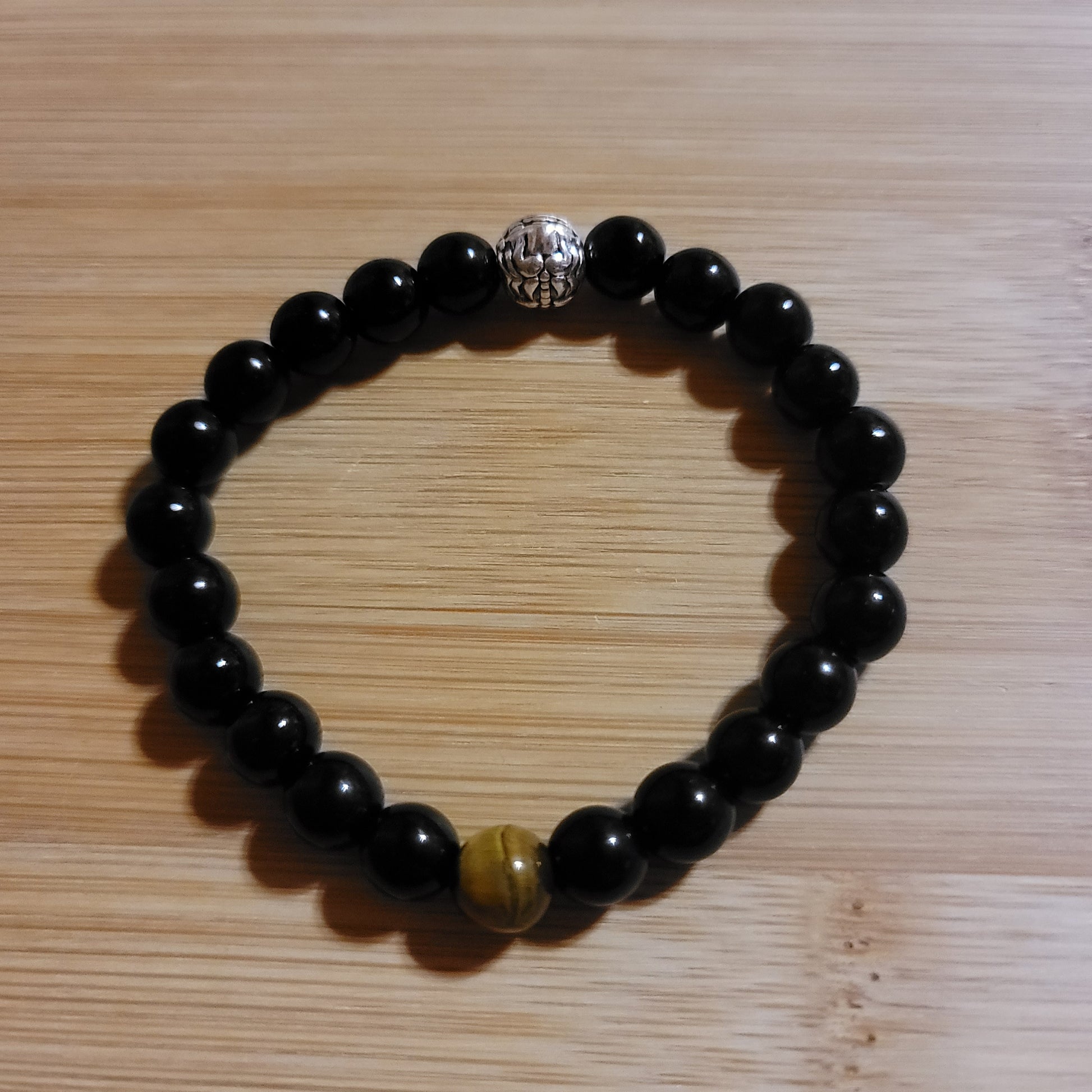 Black Obsidian with Tiger's Eye Accent Bead