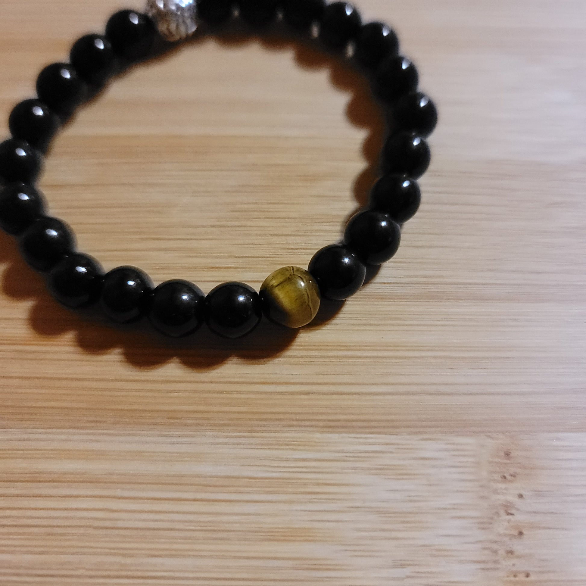 Tiger's Eye and Black Obsidian bracelet with silver spacer beads.