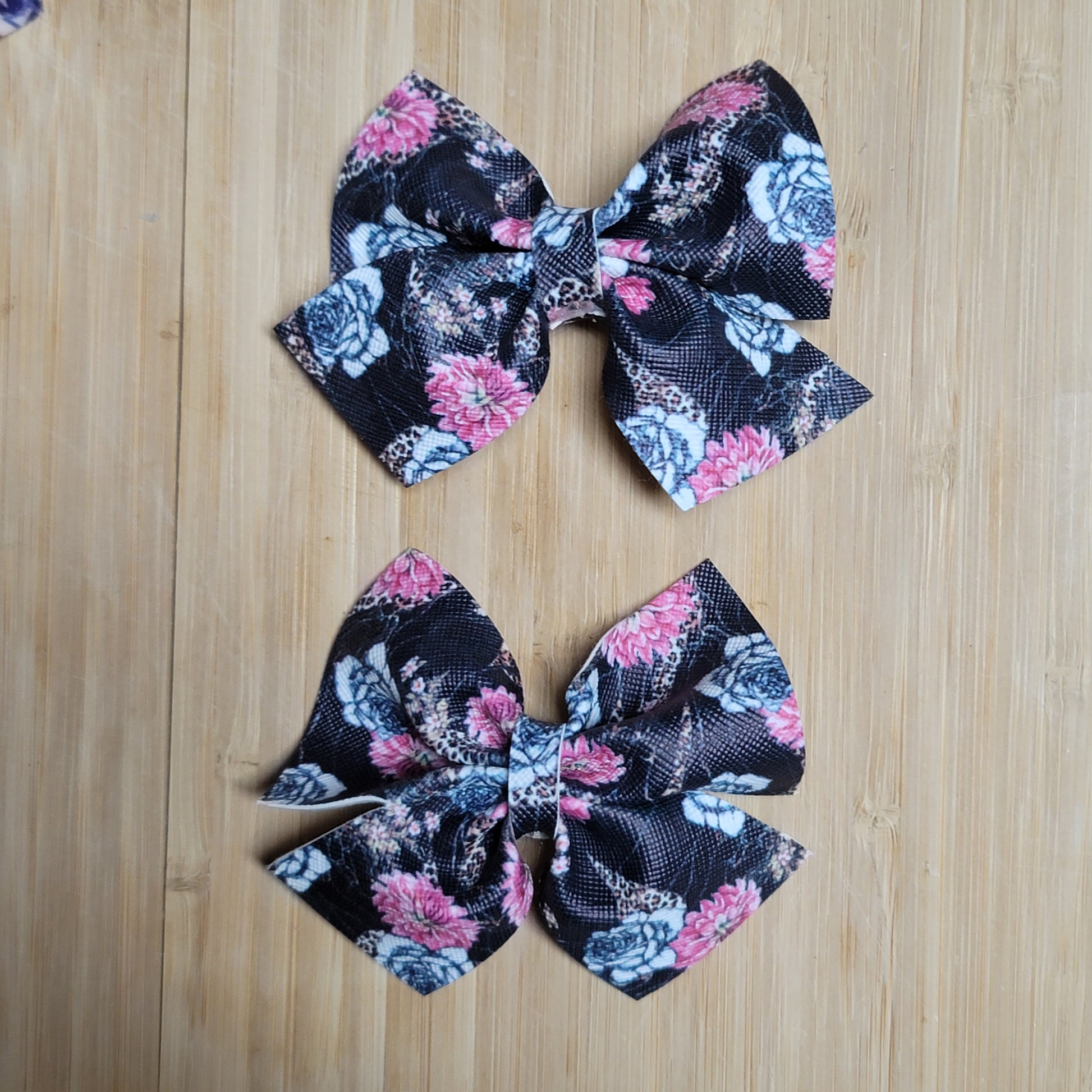 Black, pink and white floral with cheetah print faux leather.