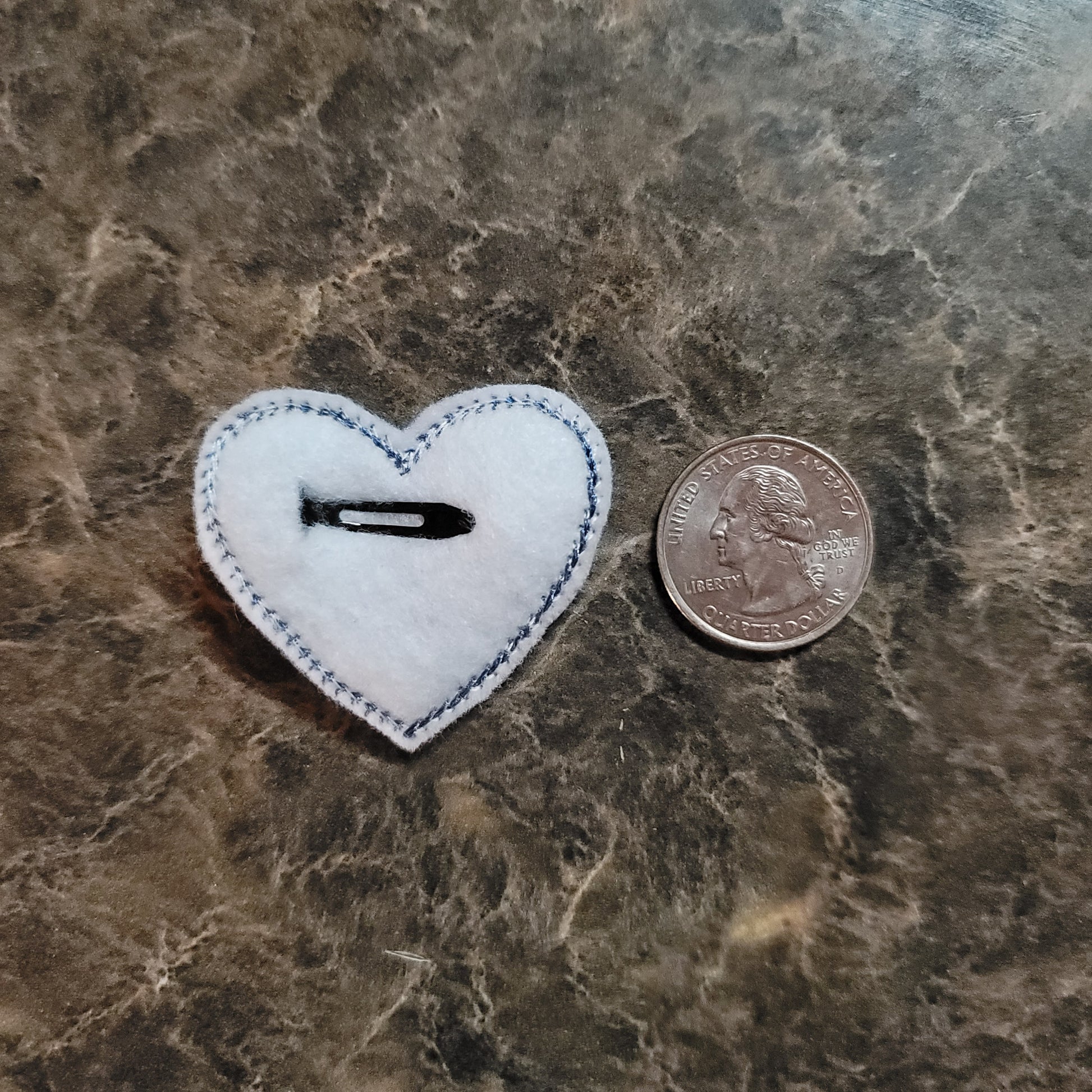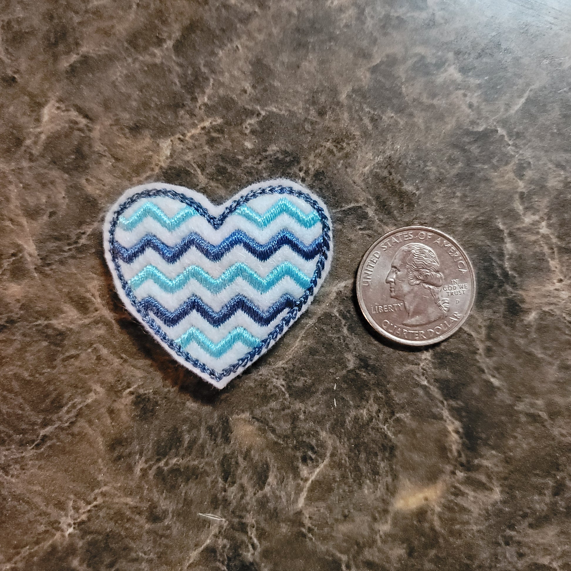 Blue chevron heart feltie secured on a 1.2 inch snap clip.