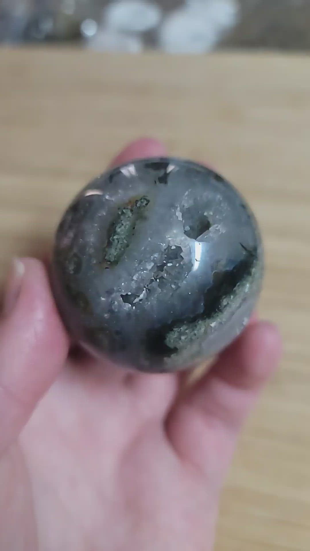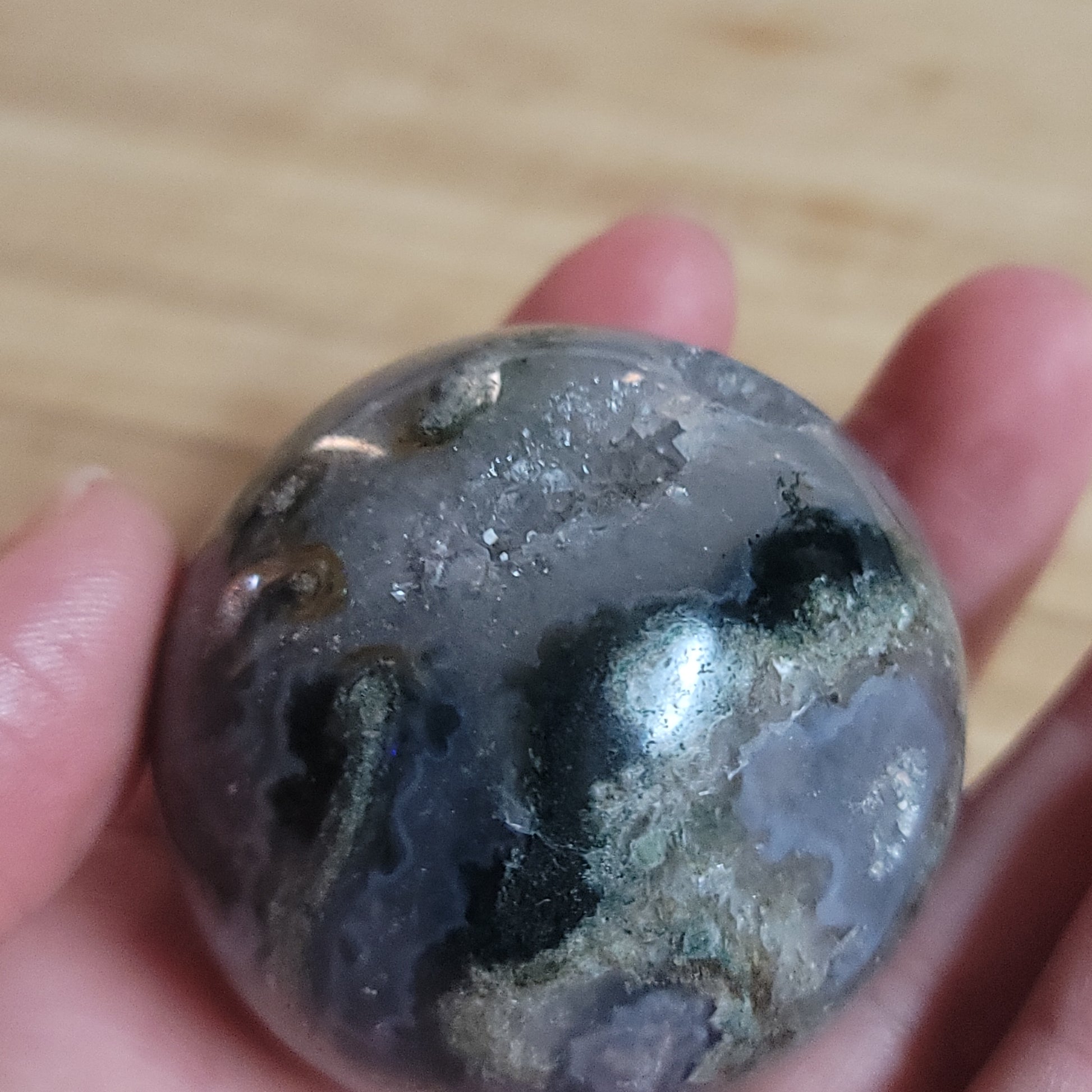 Blue Moss Agate Sphere with Druzy
