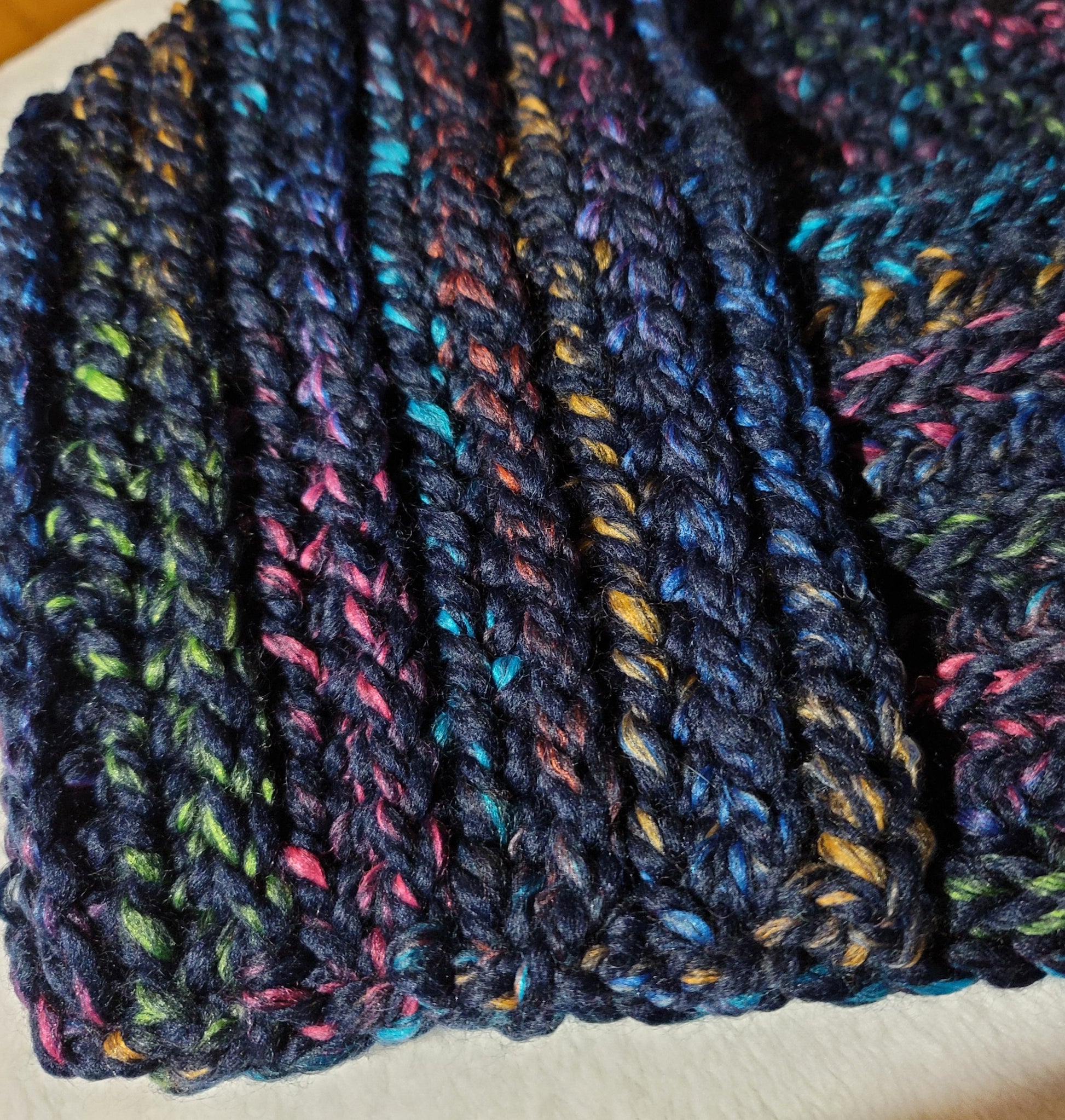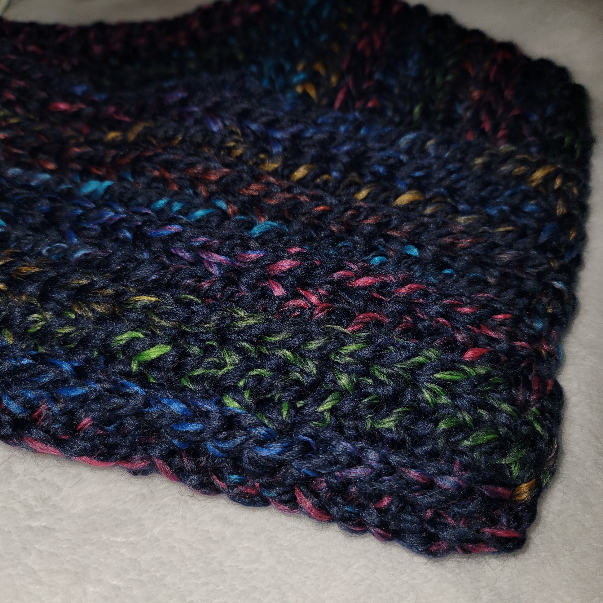 Yarn is navy blue with multicolor. Yarn name: City Lights.