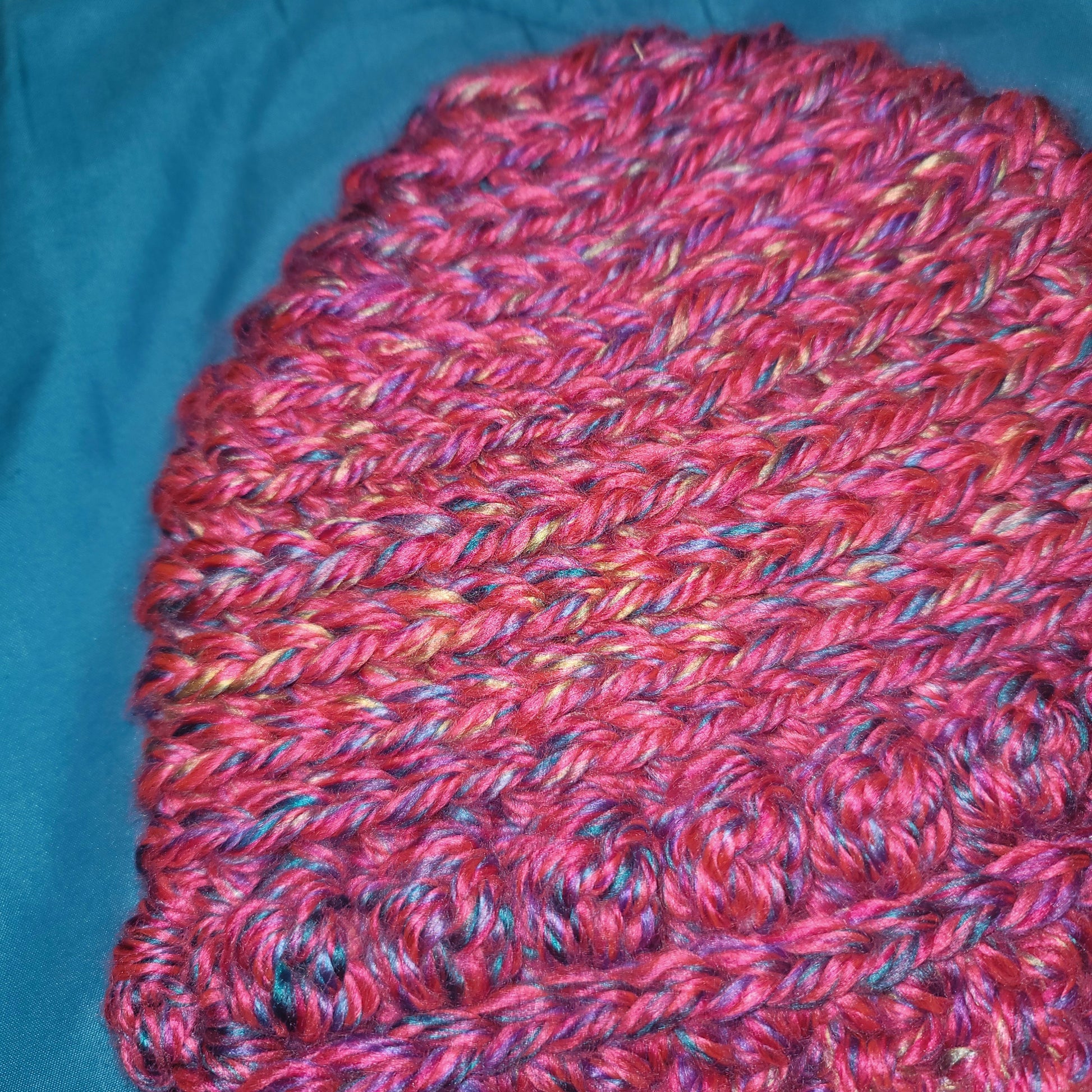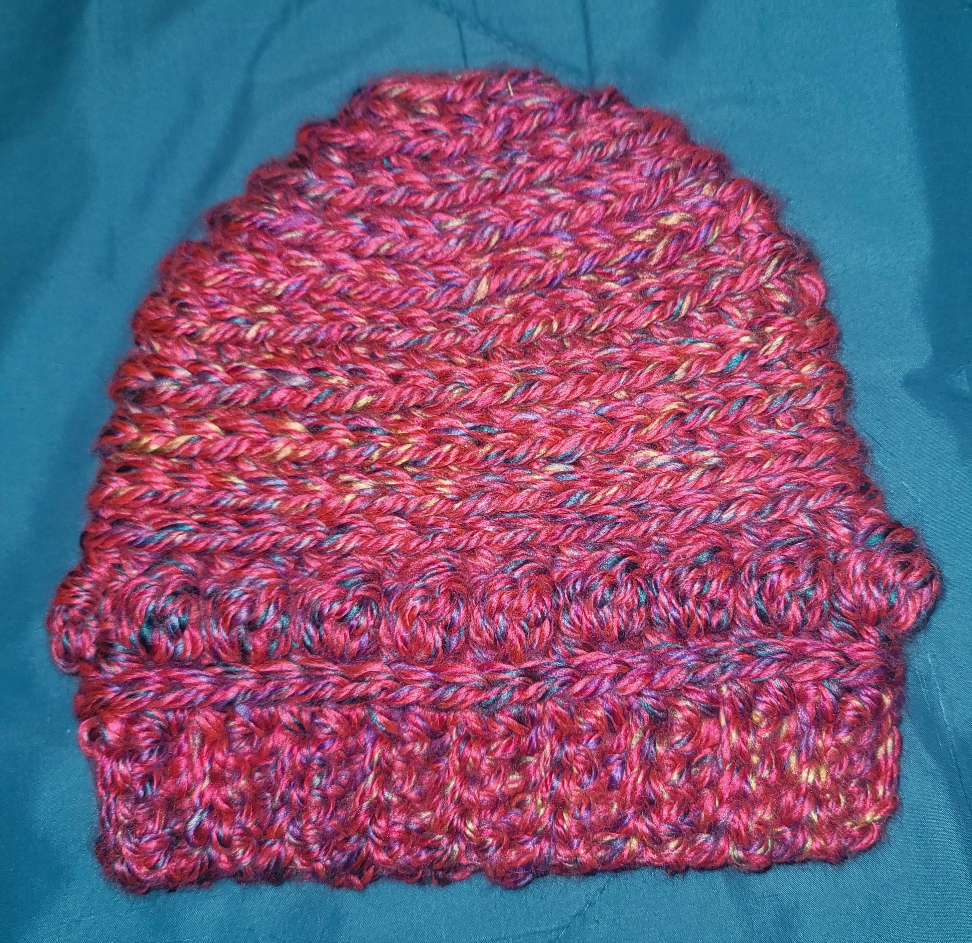 Hat circumference 16 inches at the brim with lots of stretch. Hat height is 8 inches.