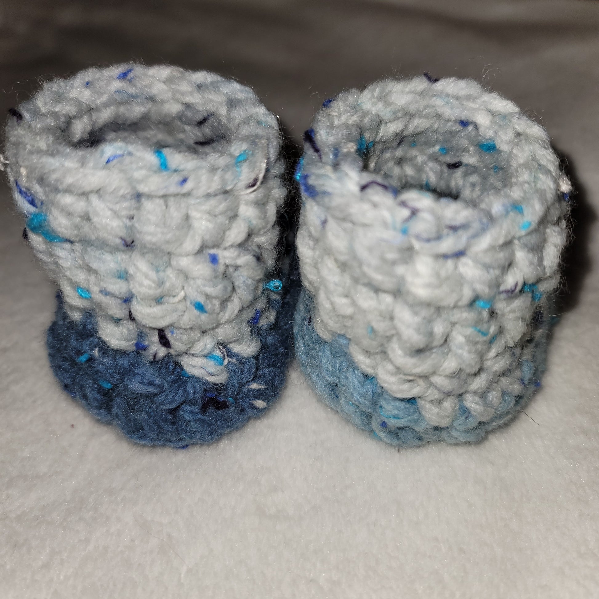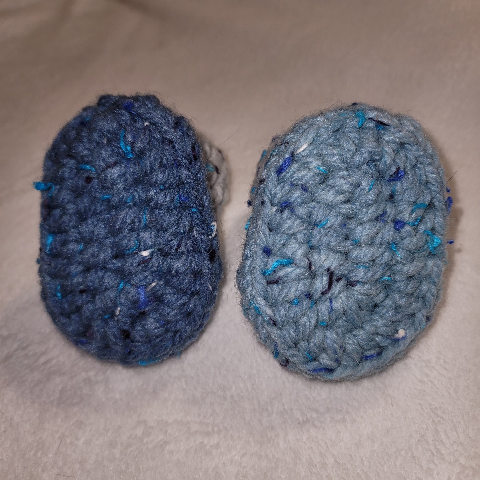 These are fun with slightly different blues for the soles as the yarn was self-striping.
