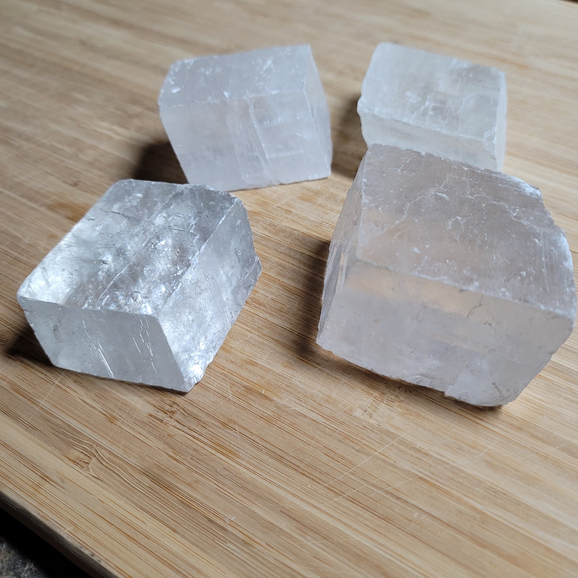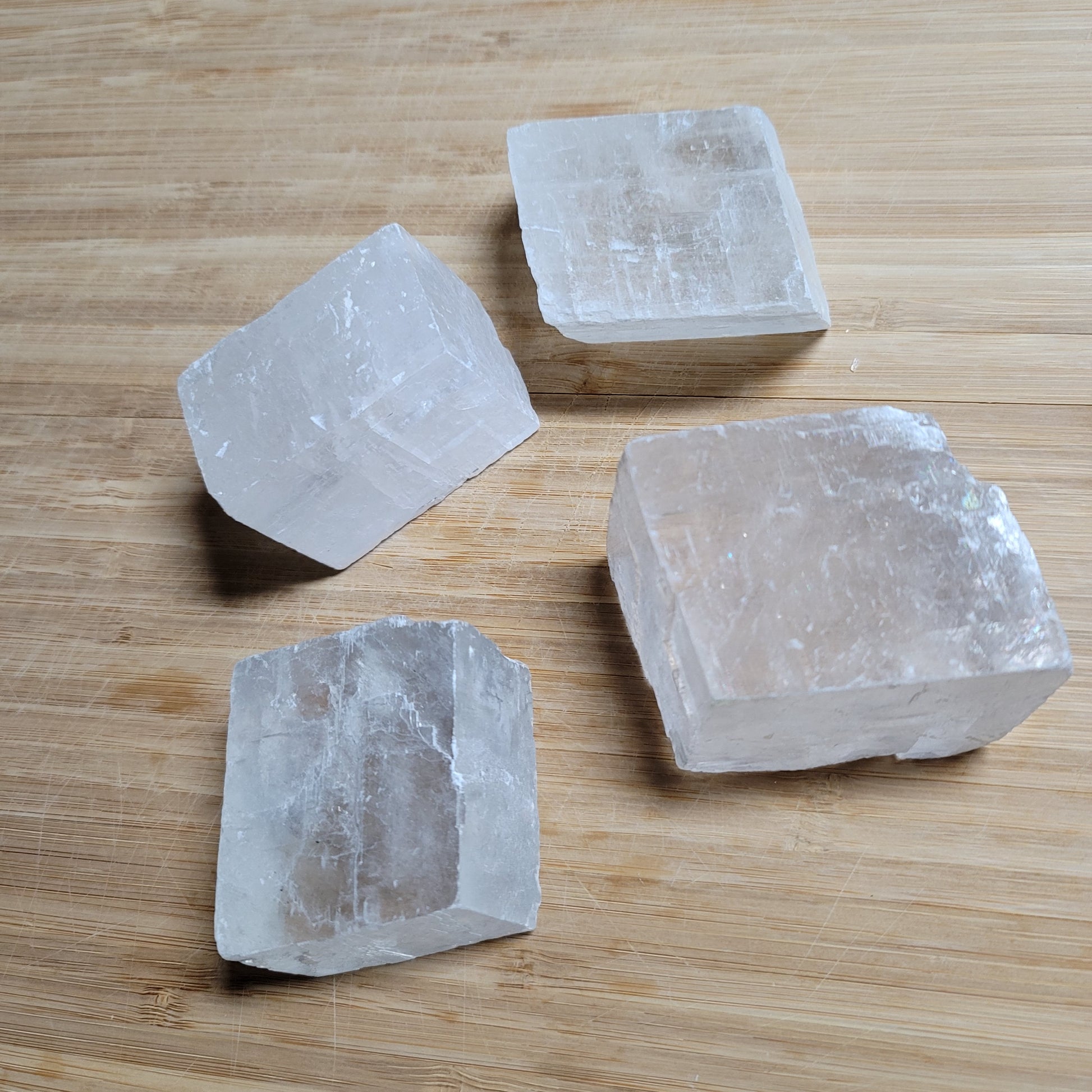 Clear Caclite amplifies energy and facilitates manifestation. Removes energetic blocks and cleanses the all the chakras. Promotes clarity, insight and helps one understand their true path and purpose. A great stone for spiritual development and enhancing ones intuition.