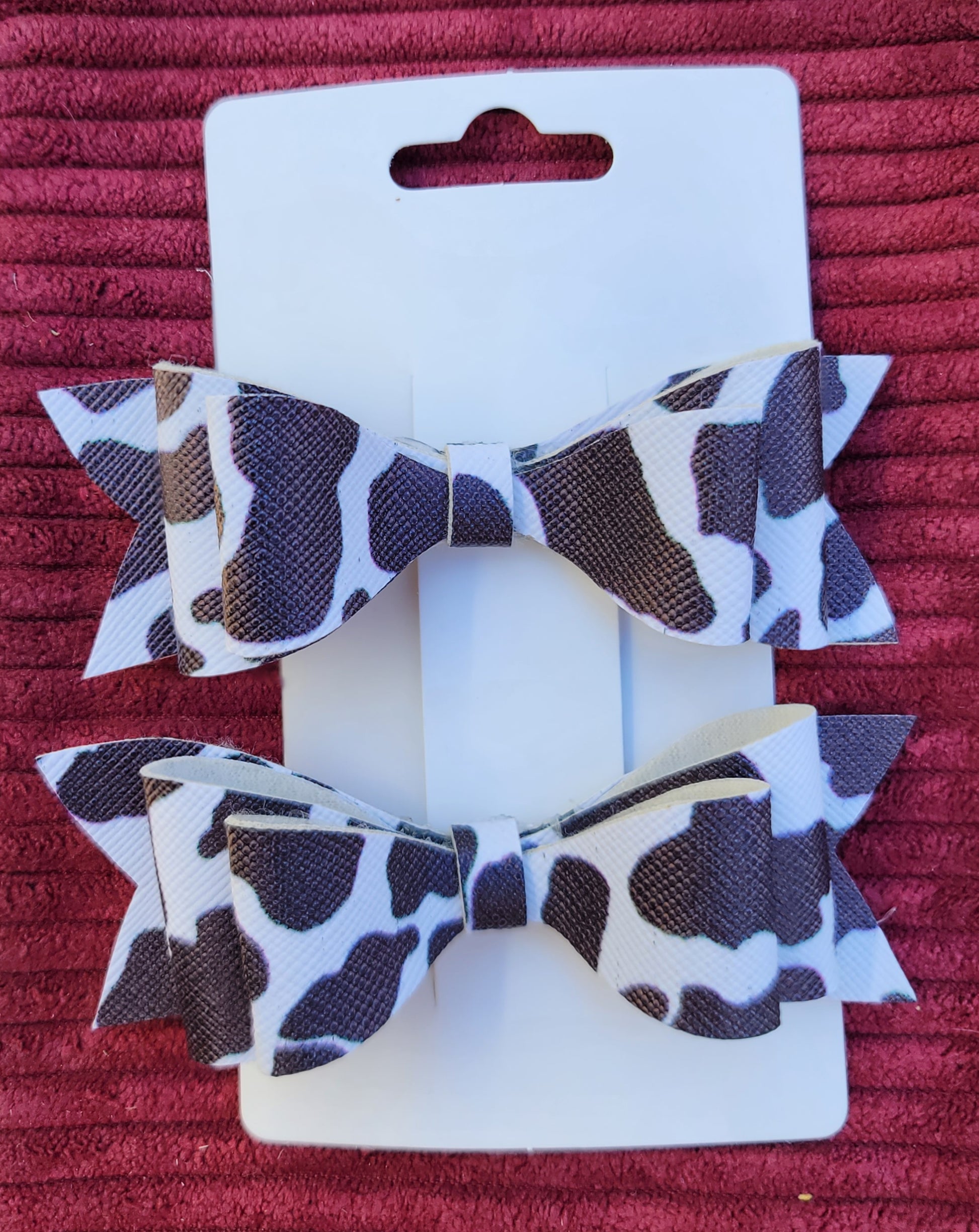 Vegan faux leather. Double stack small bow set. Secured to an alligator clip.