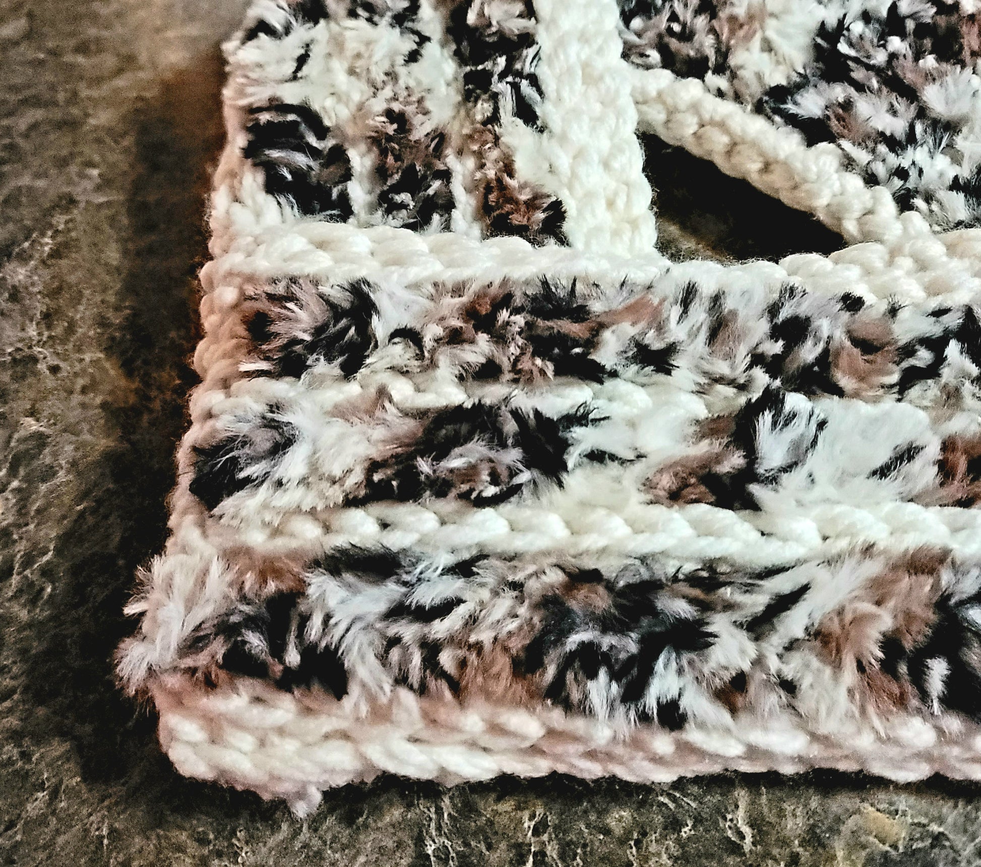 Acrylic/wool blend. Faux fur is 100% Polyester.