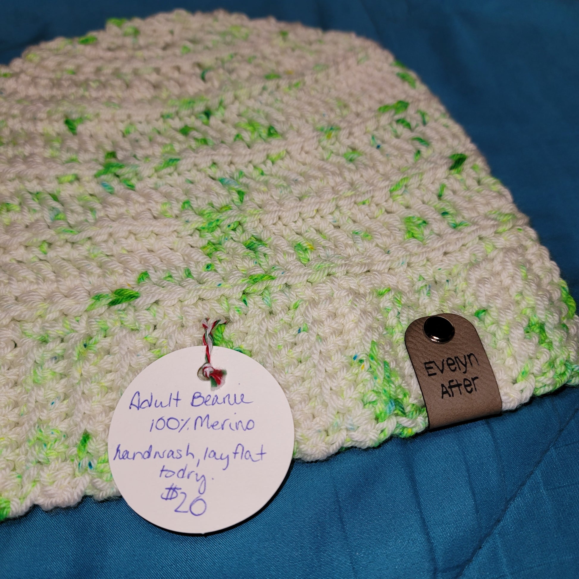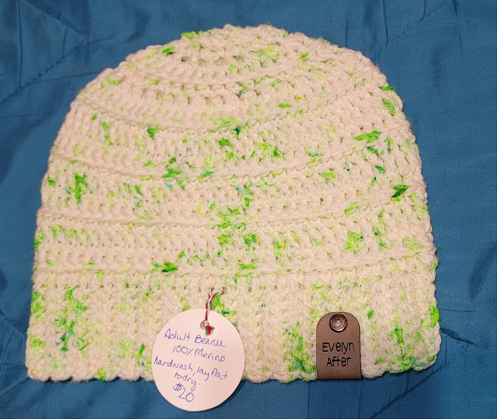 Hat measures 8 inches in height and has a 17 inch circumference. 2 inches of ease for stretch.