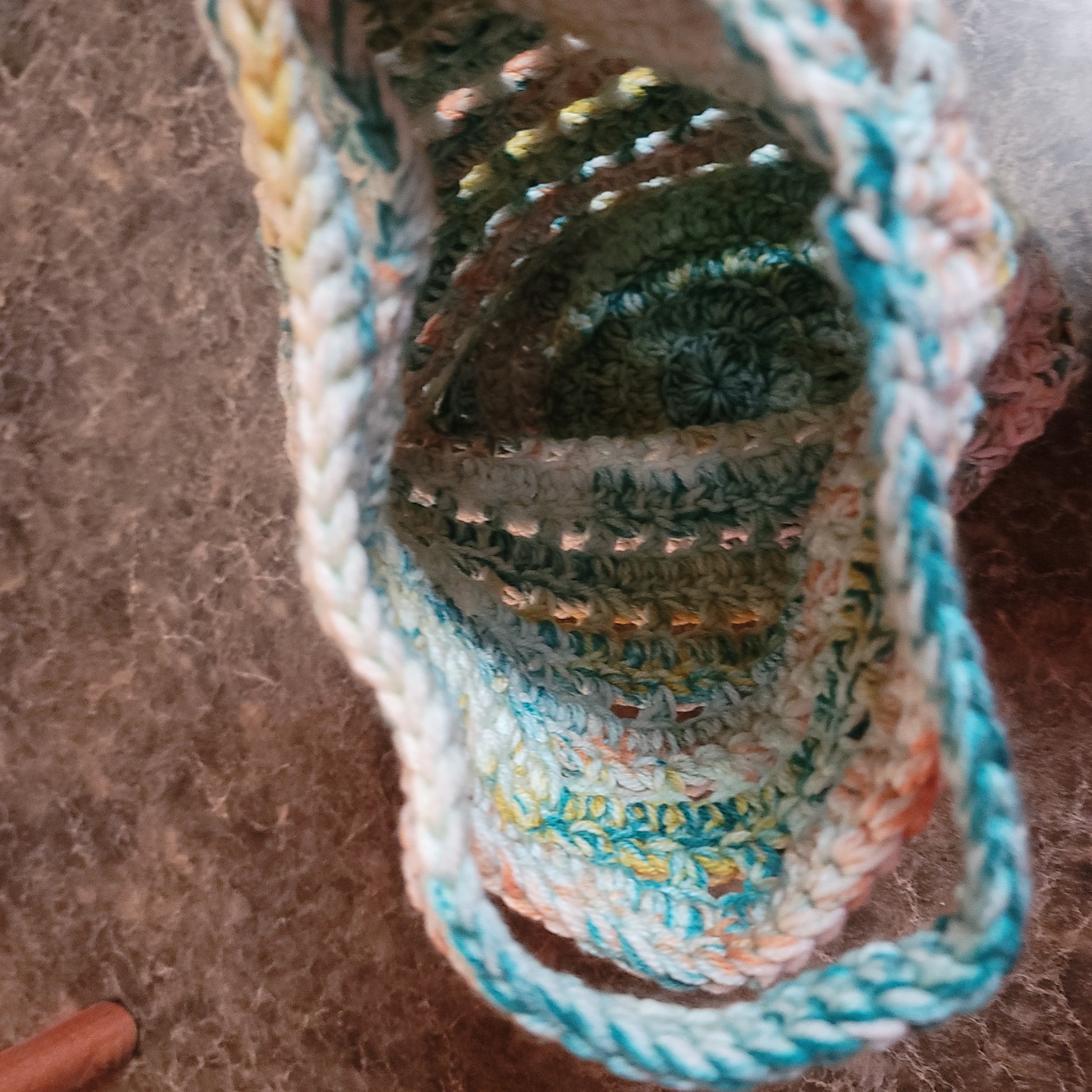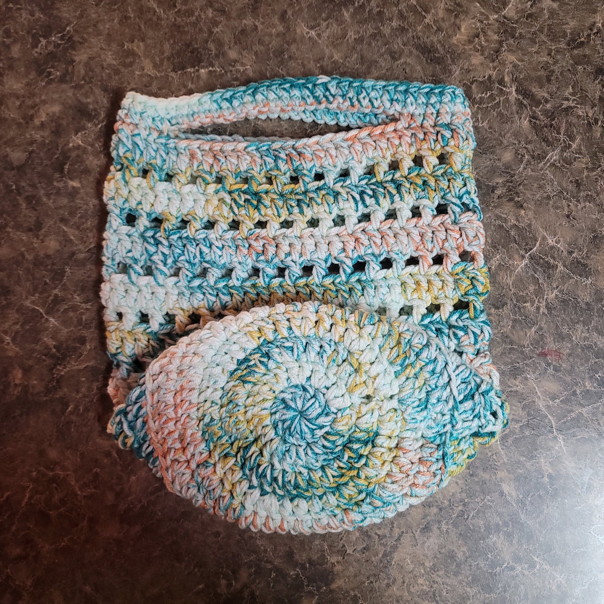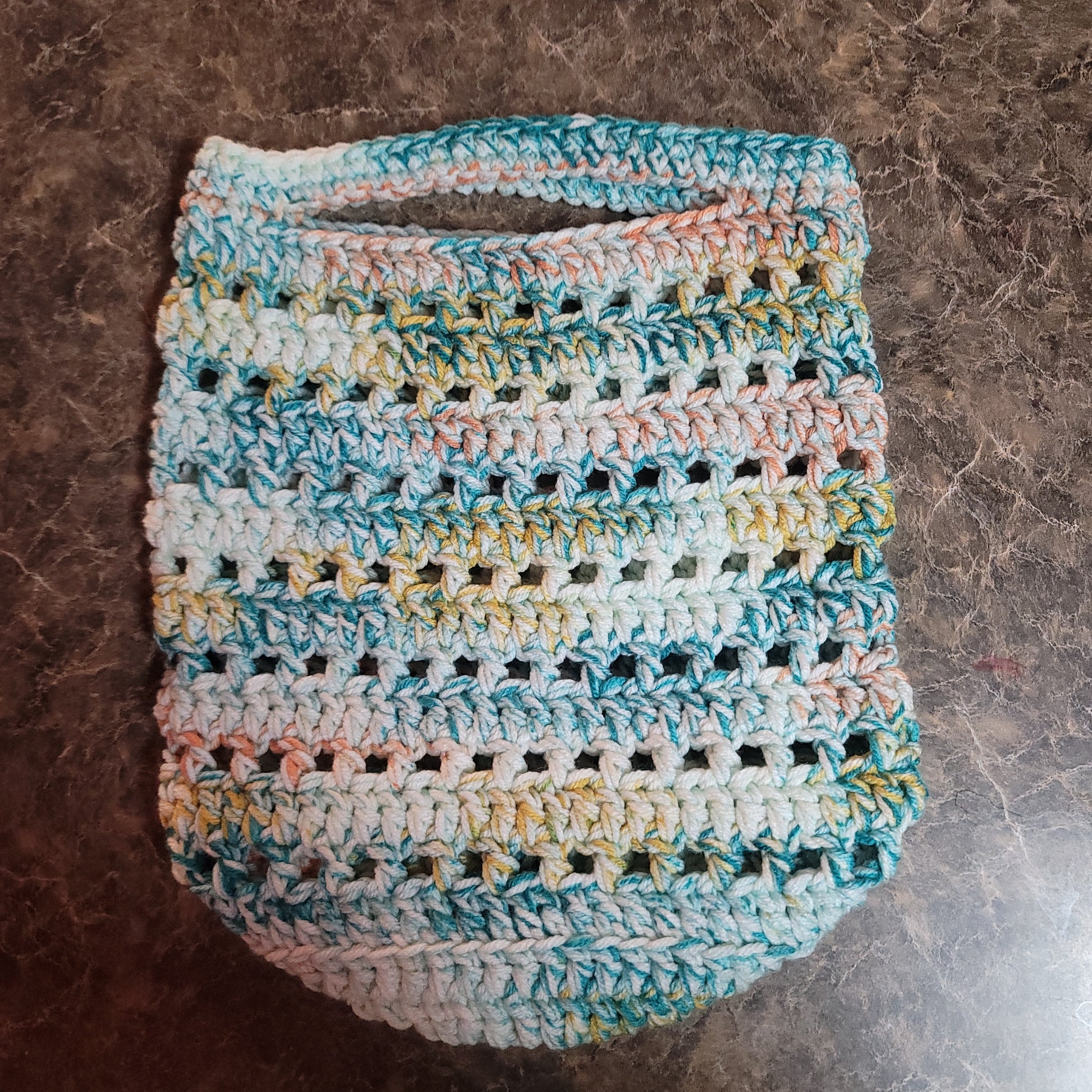 Double the Love Teal, Orange, Yellow Crochet Tote Bag