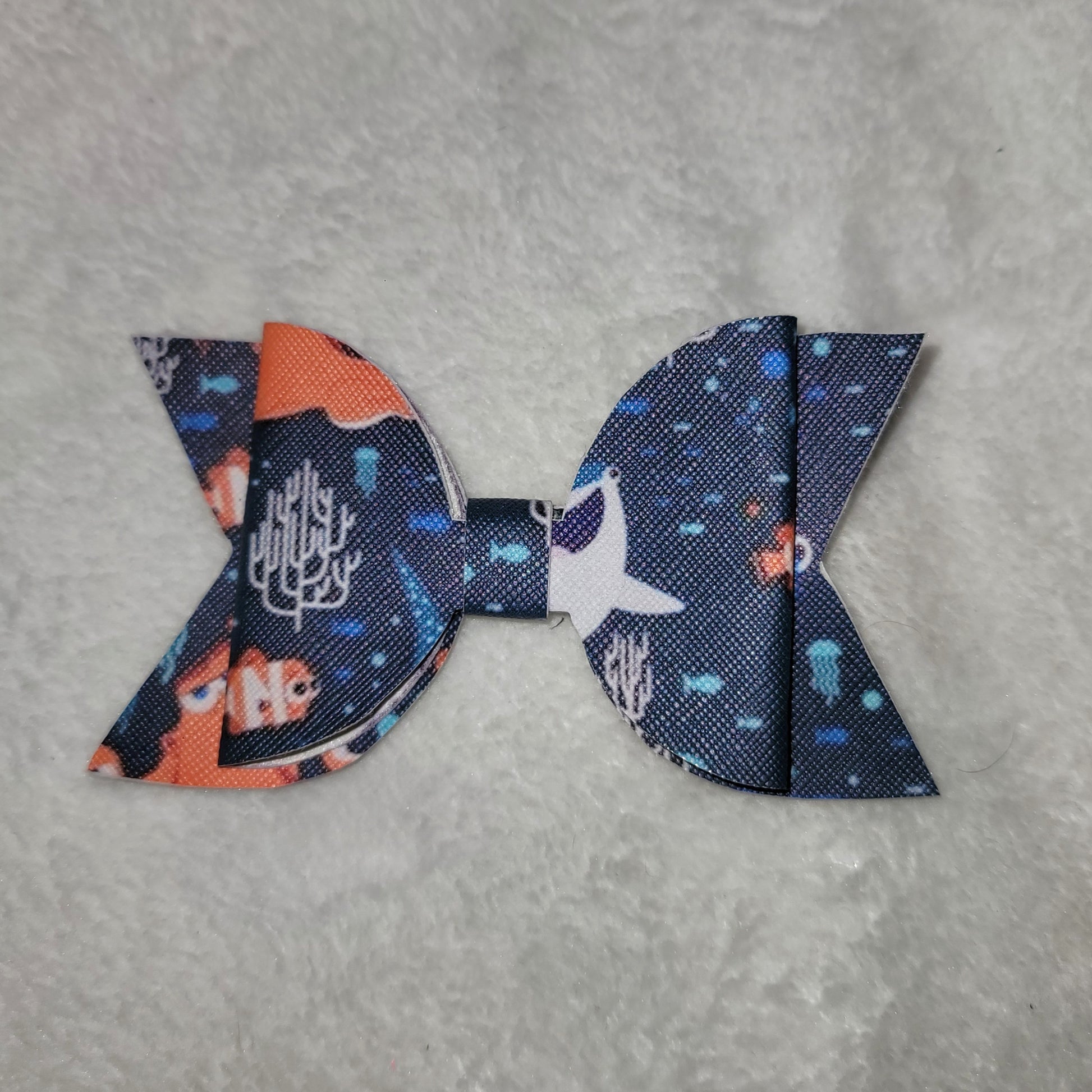 Disney inspired Finding Nemo print faux leather, large bow secured on an alligator clip.