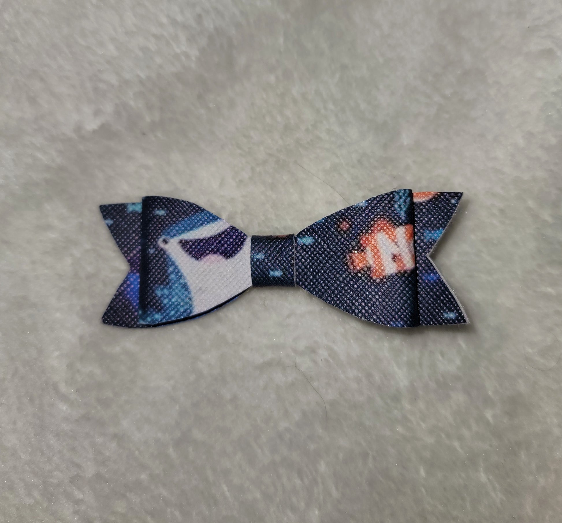 Disney inspired Finding Nemo print faux leather, single stack bow secured on an alligator clip.