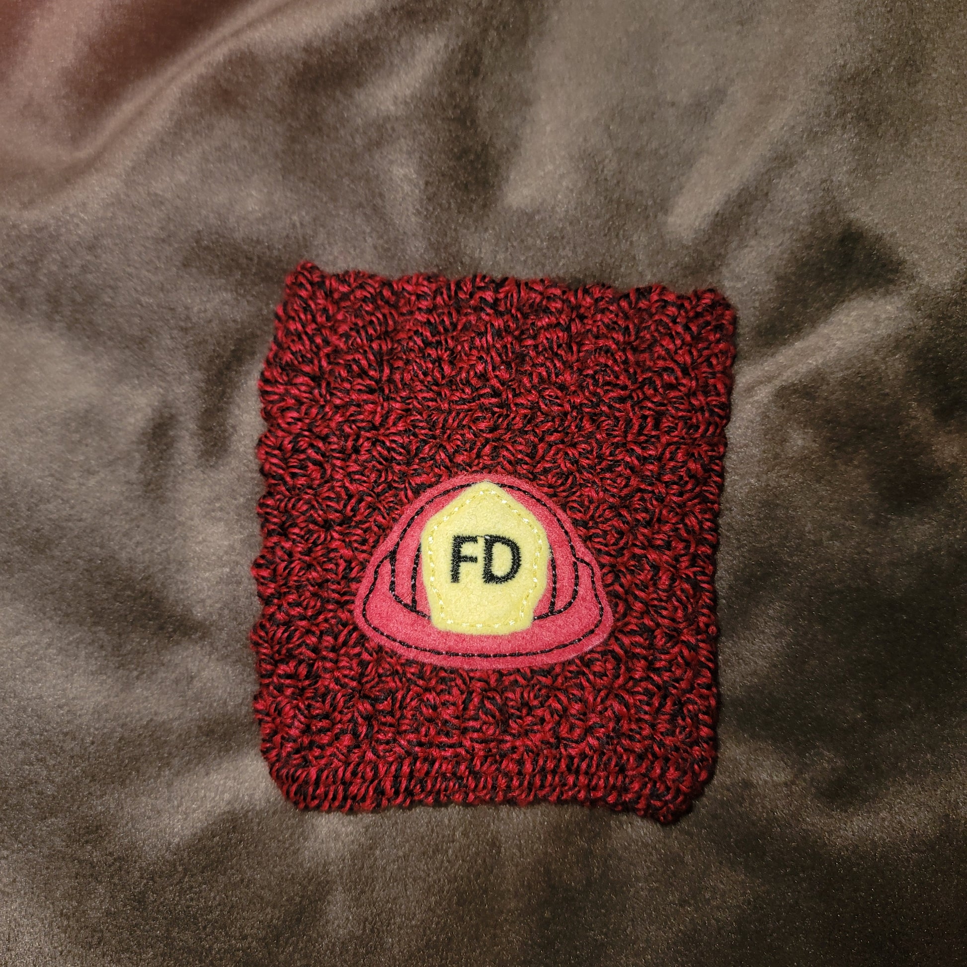 100% acrylic yarn. Patch is embroidered felt. Machine wash gentle, tumble dry.