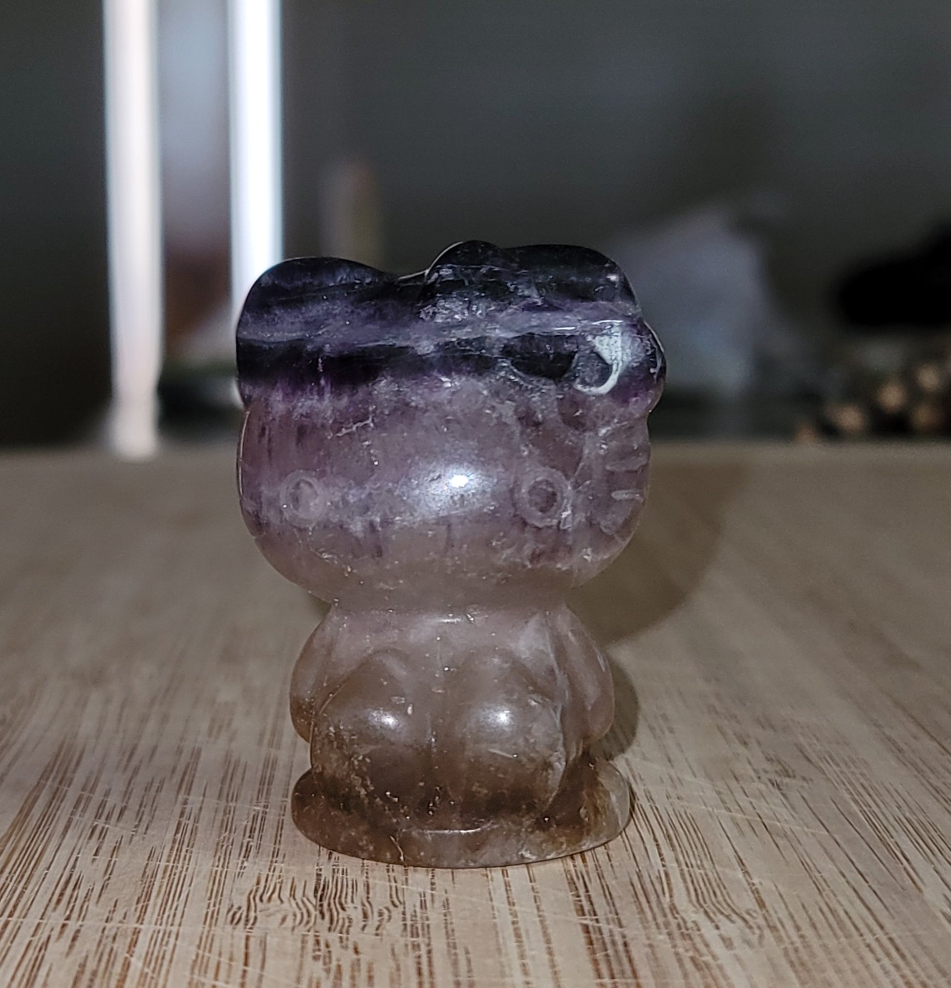 Fluorite Hello Kitty Carving. 2 inches tall and 1.5 inches wide.