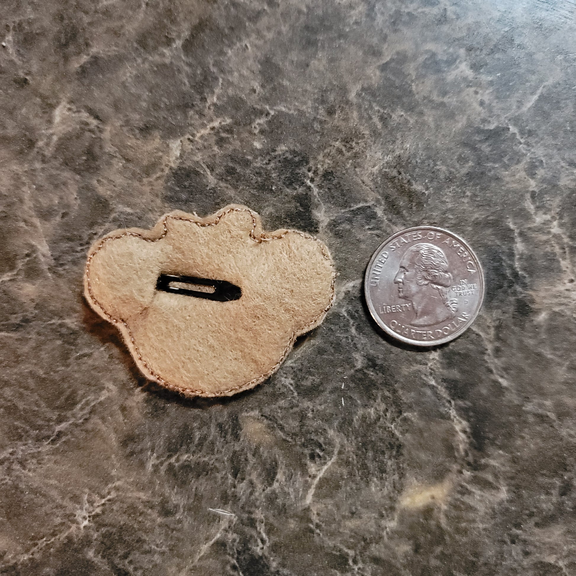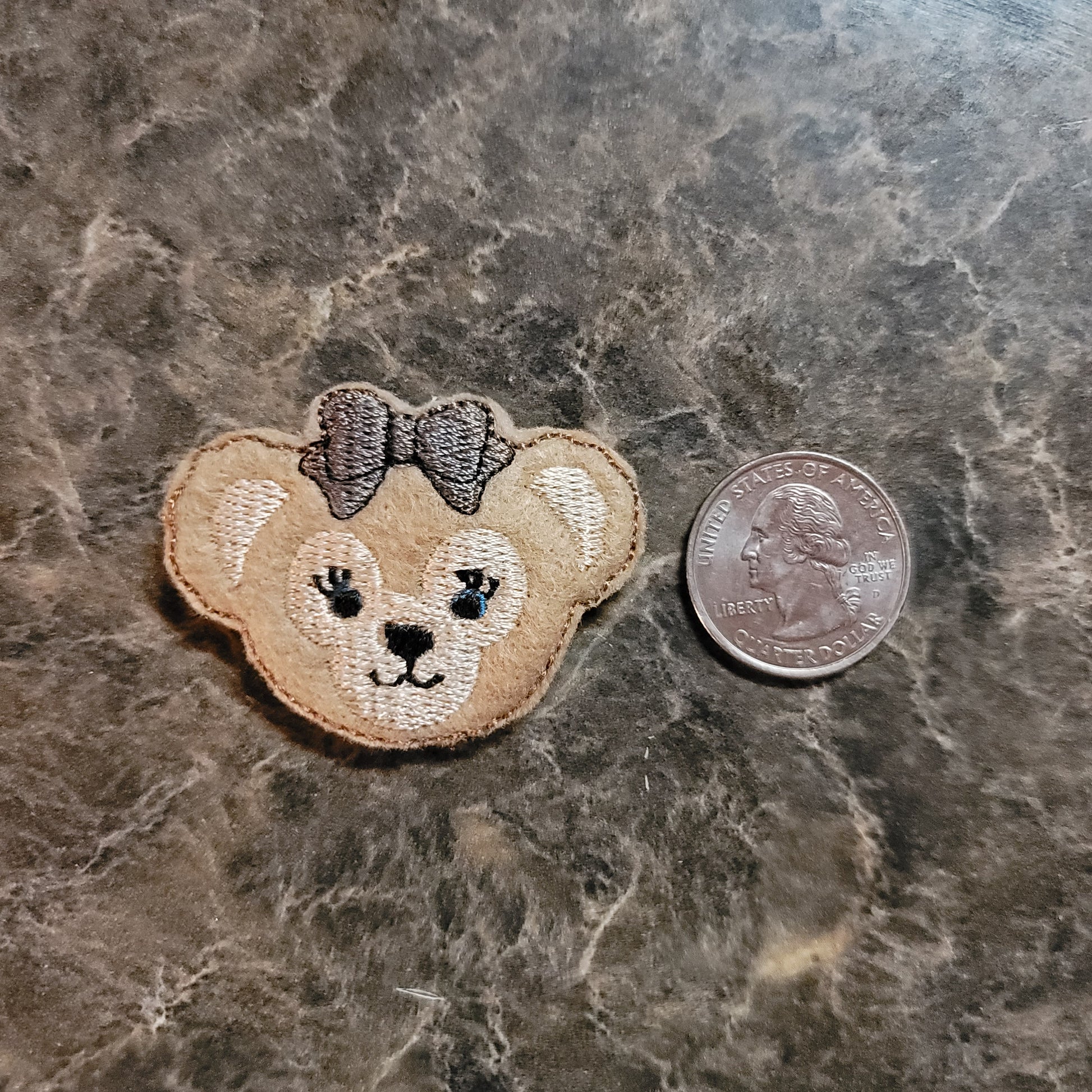 Duffy & Friends inspired girl bear feltie secured on a 1.2 inch snap clip.