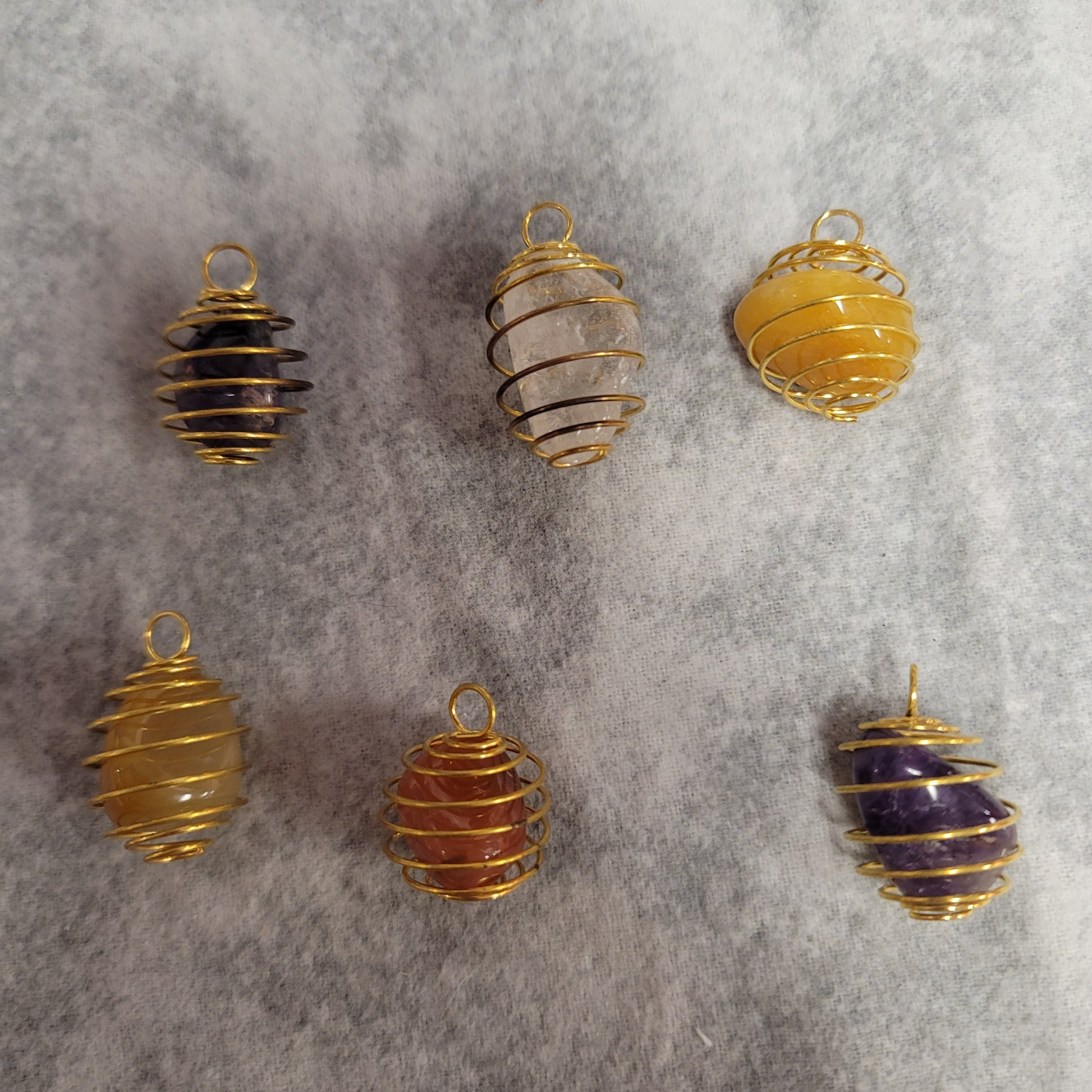 Gold cage pendants. Each comes with a random tumble. The tumbles can be changed out.
