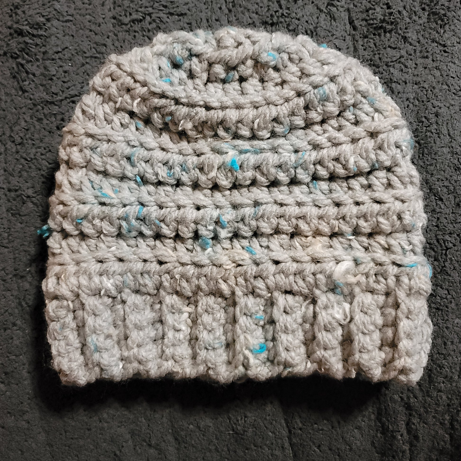 Hat measures 16 inch circumference across brim with 2 inches of ease for nice stretch. Hat height is 7.25 inches.