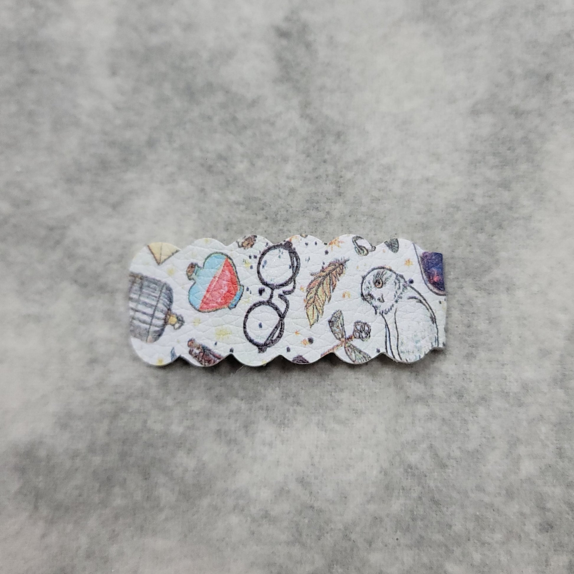 Harry Potter print faux leather secured on a 2 inch snap clip.