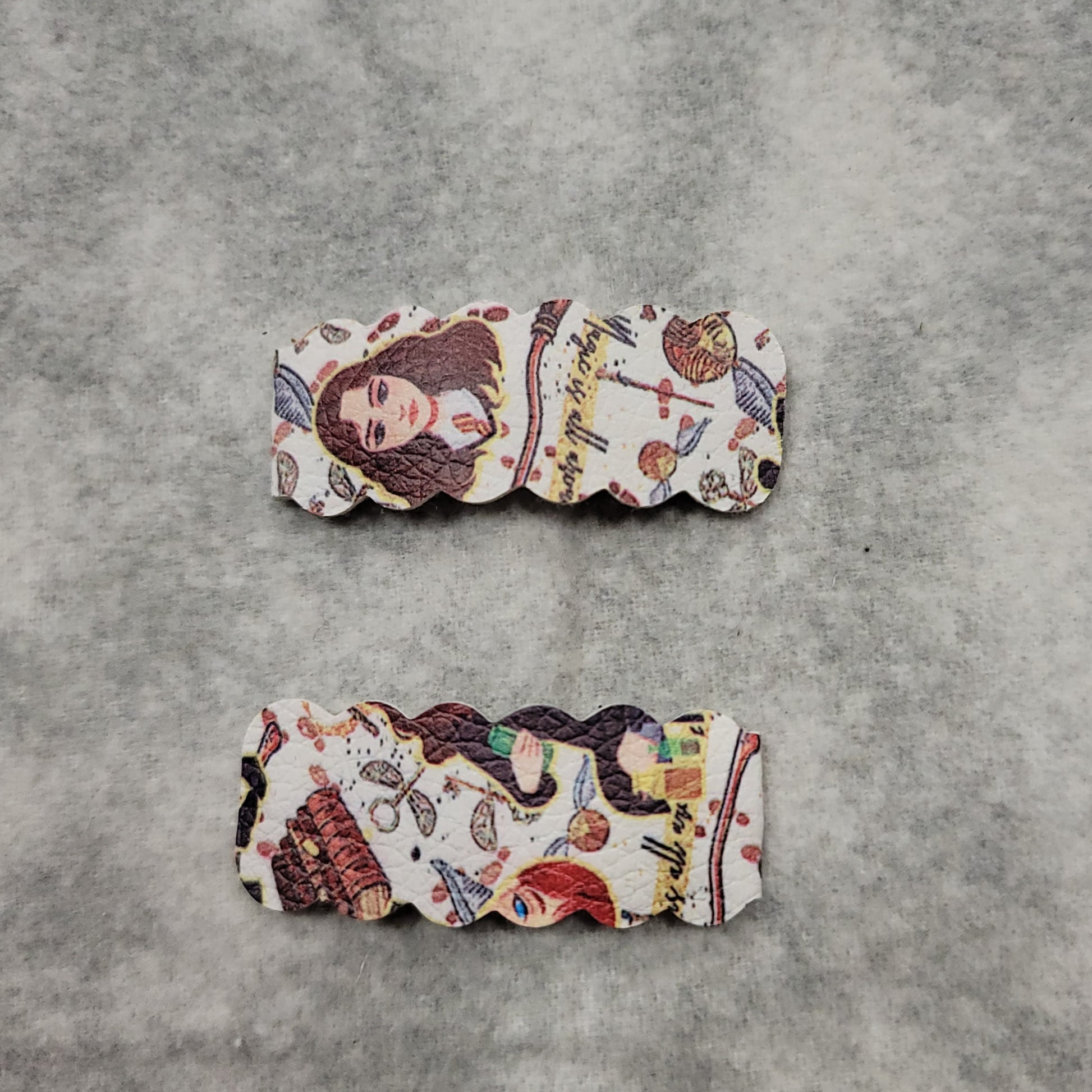 Scalloped design, Harry Potter print faux leather secured on a 2 inch snap clip.