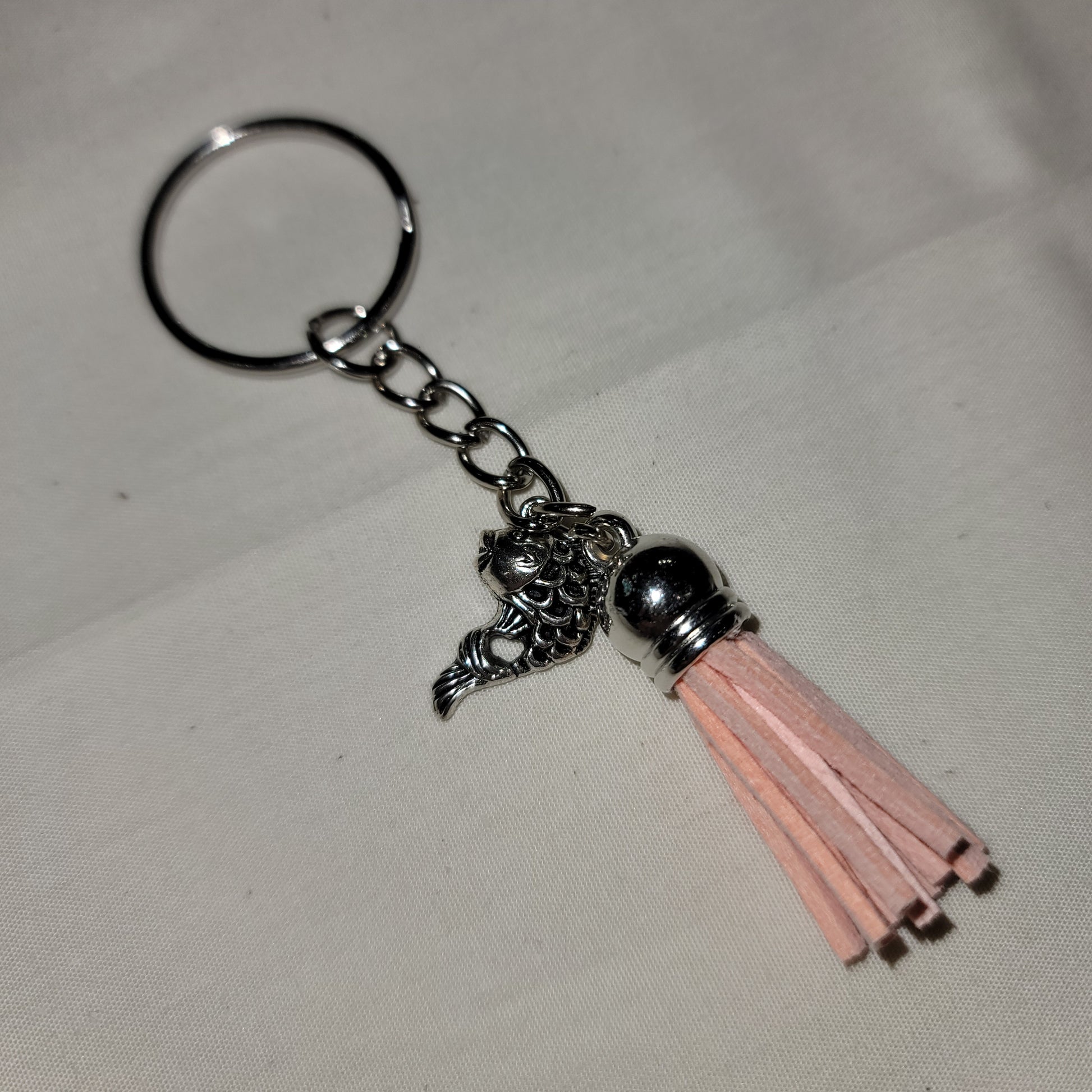 Koirala fish charm and a light pink faux leather tassle.