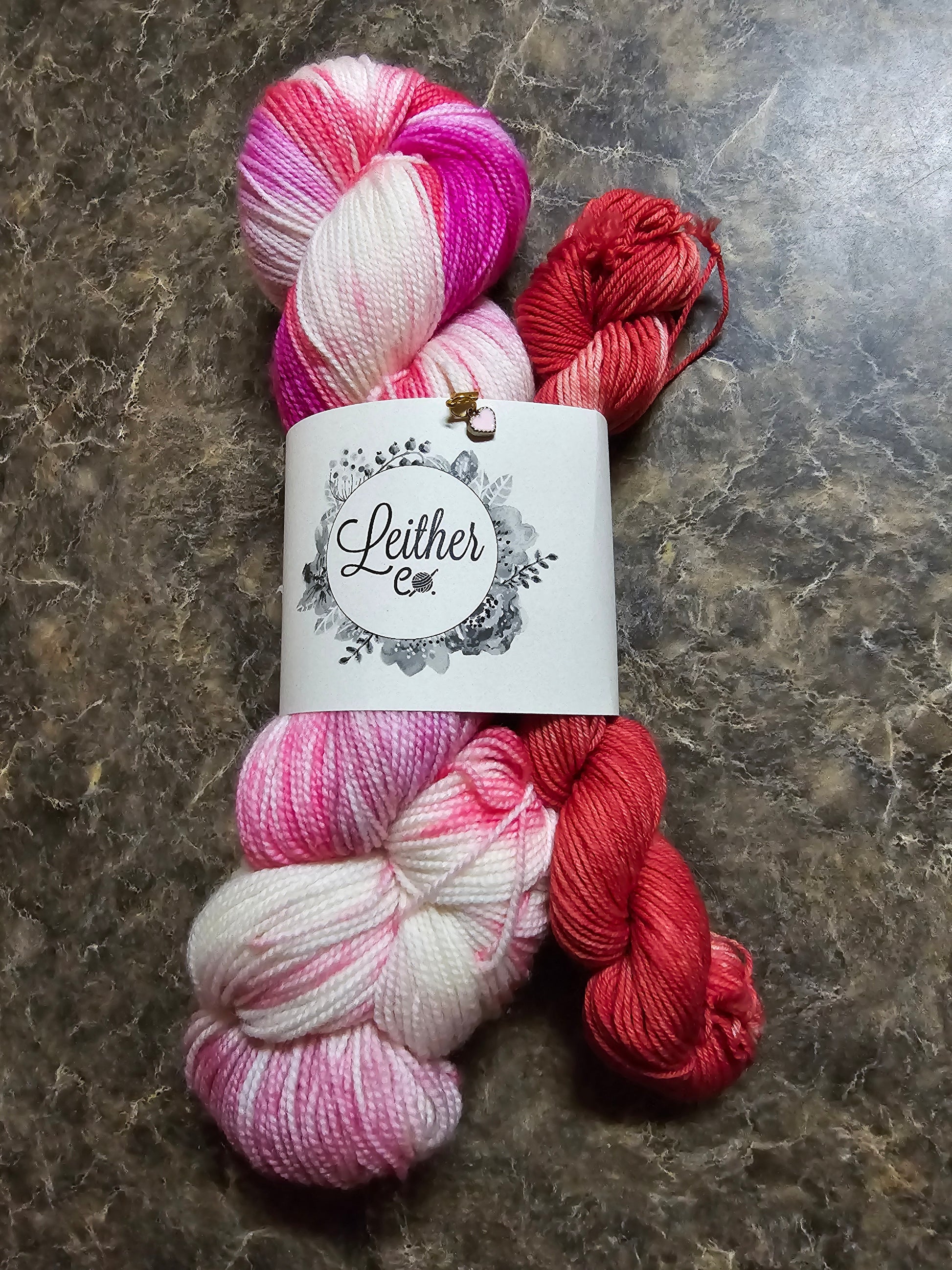 Leither Co Valentine's Sock Set. Stitch marker included.