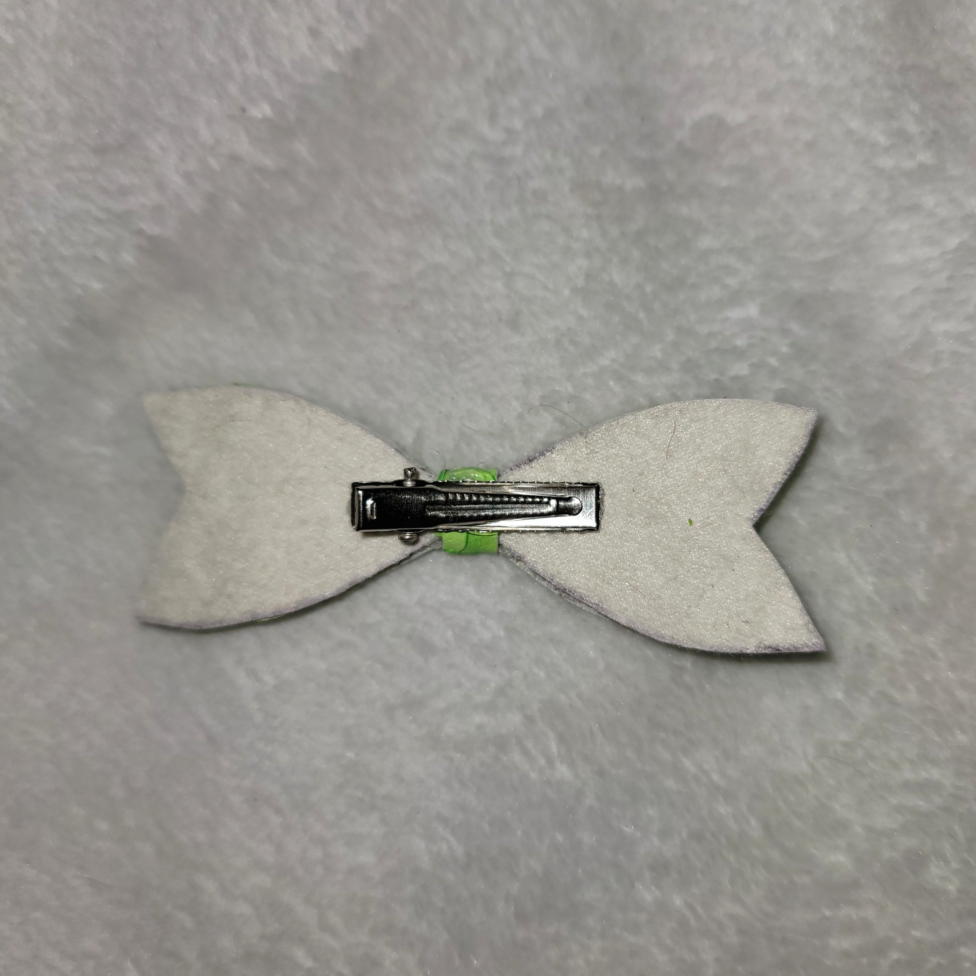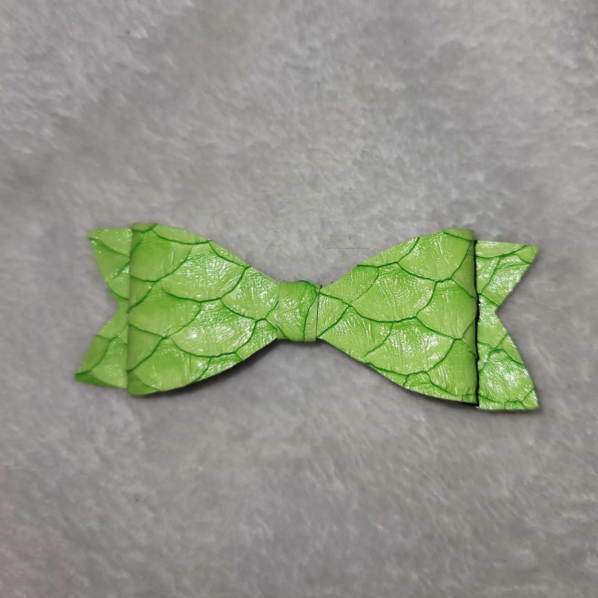 Lime green scale print faux leather, single stack small bow secured on an alligator clip.
