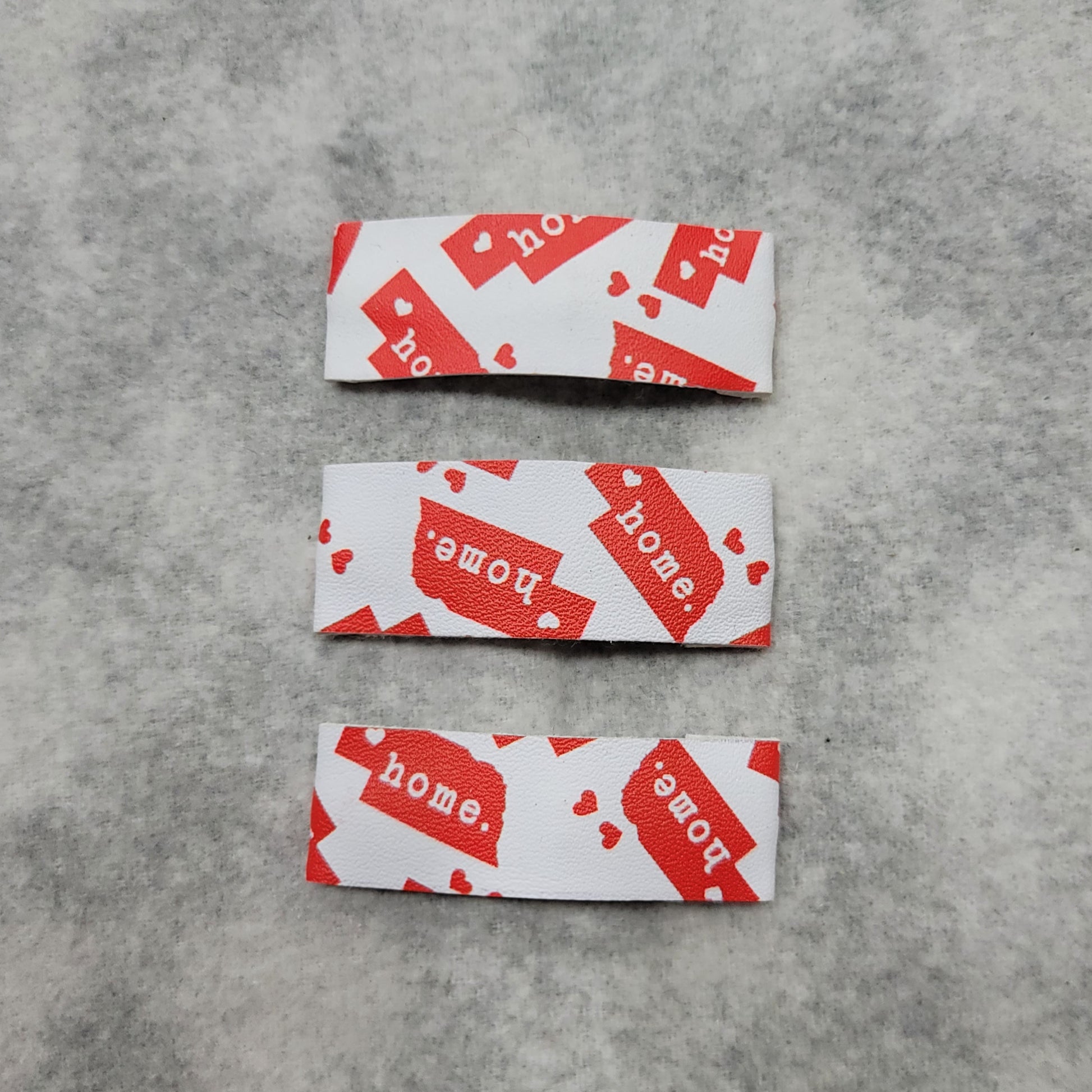 Nebraska print faux leather secured on a 2 inch snap clip.