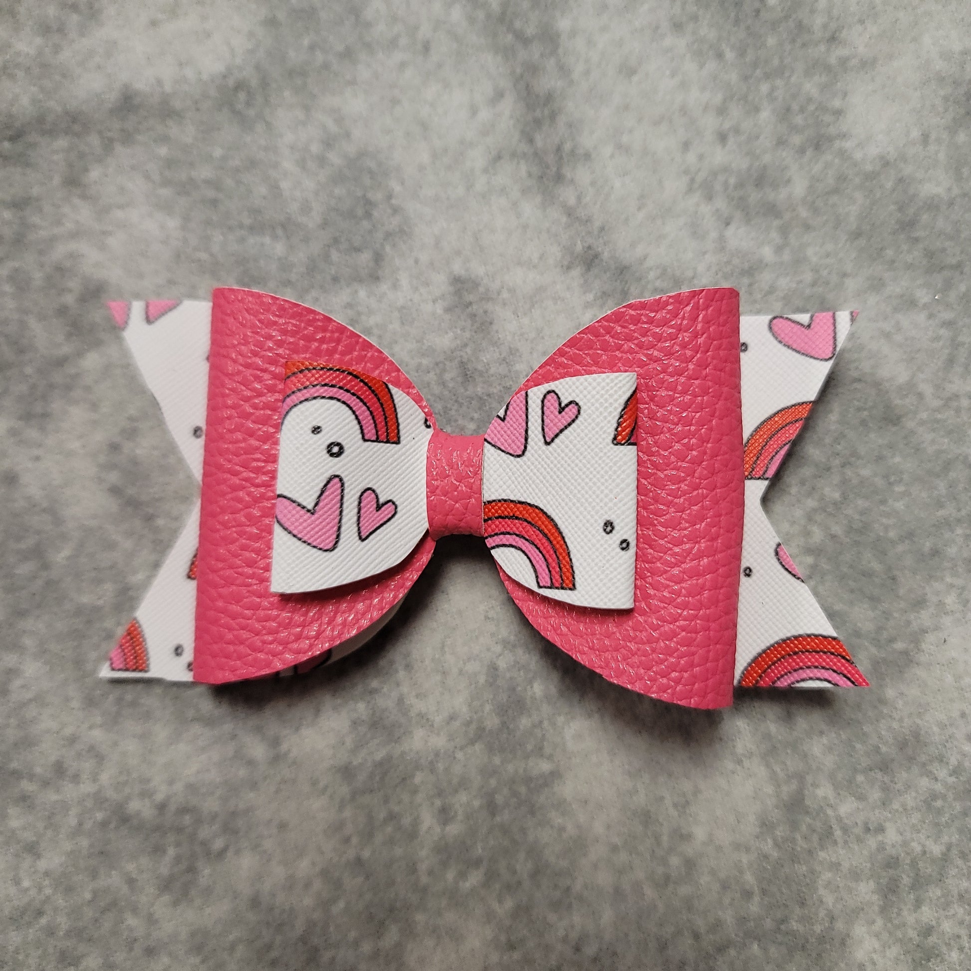Double stack pink, hearts and rainbows hairbow.