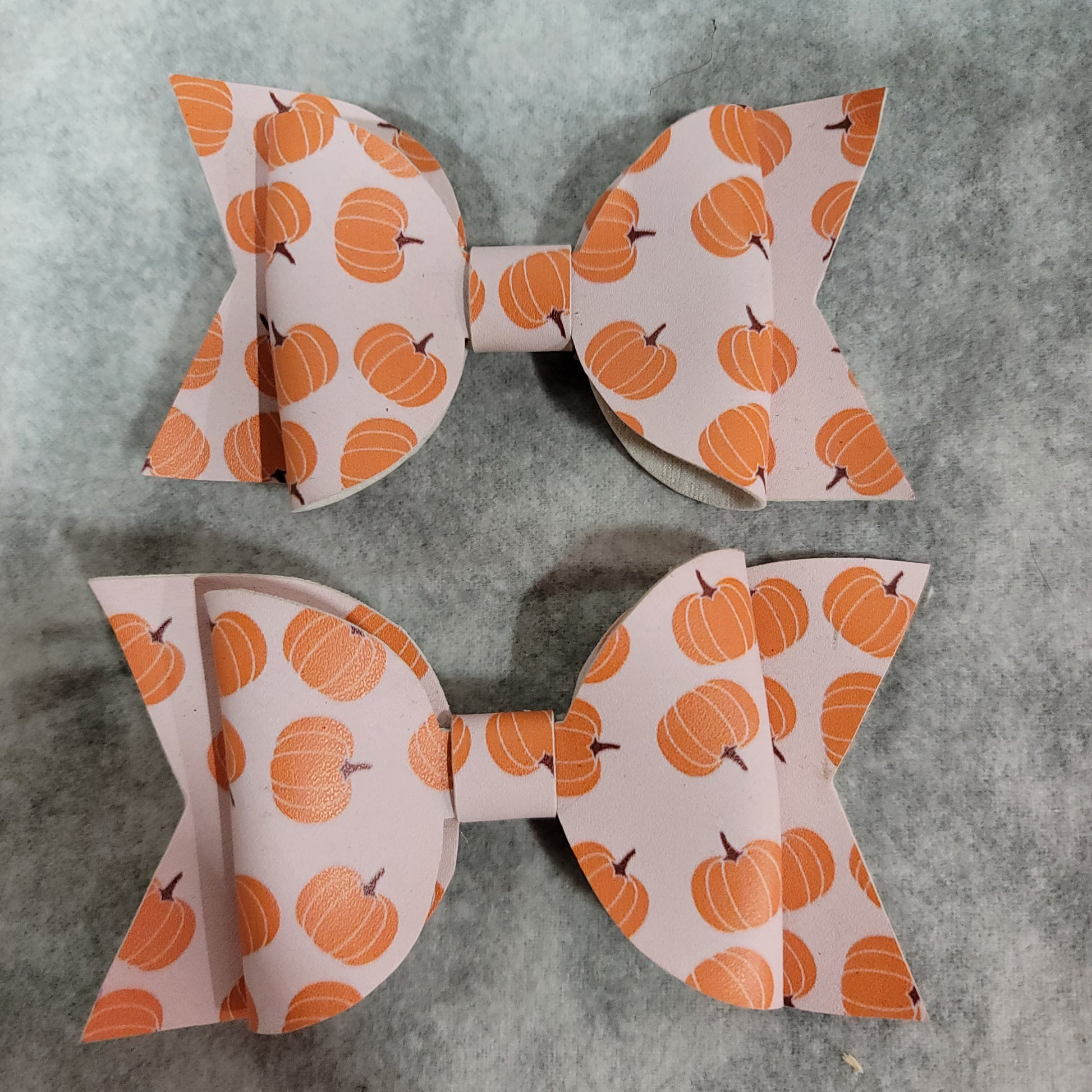Large single stack bow with orange pumpkins. Secured to an alligator clip.