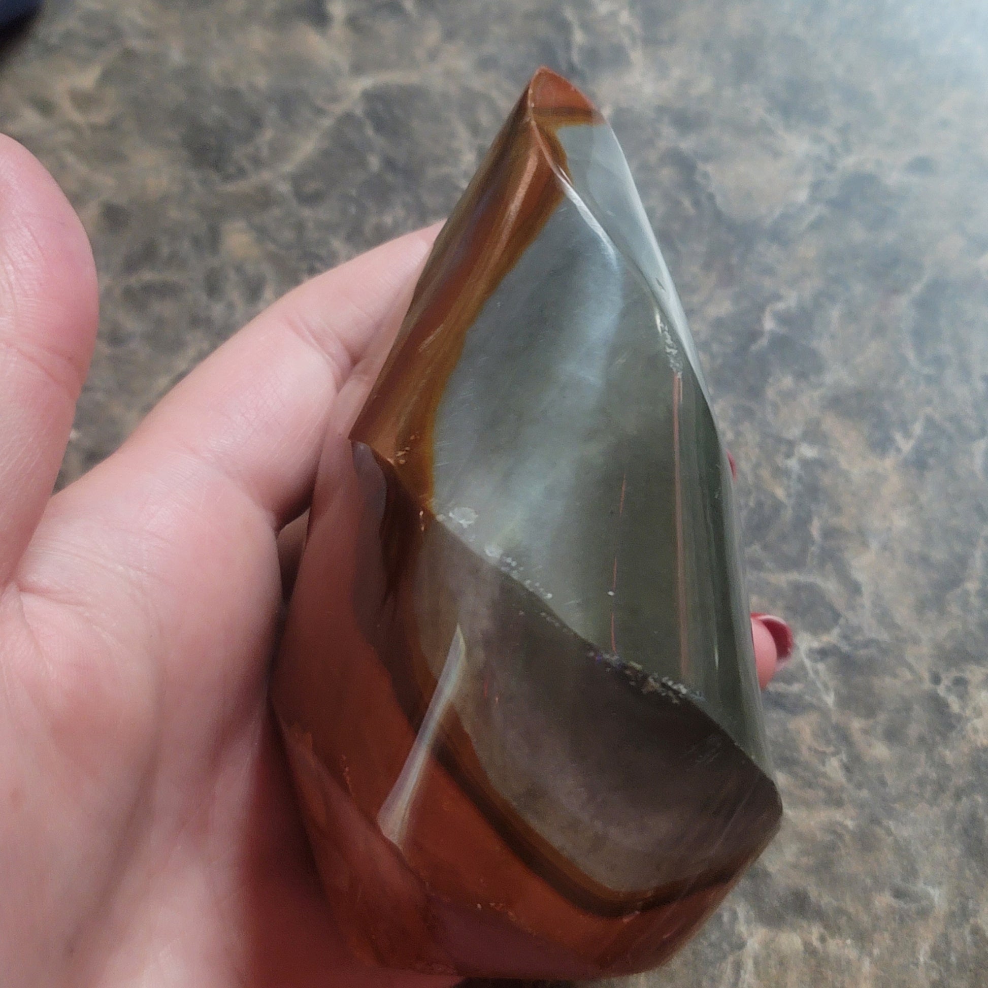 Polychrome Jasper is a stone that embodies one’s true self and helps you channel your energies to the ones closest to you. It facilitates and activates one's inner balance, while helping you conform to your current environment. Through this, one can reduce their day to day stress and embody the true elements around them. By doing this, one can not only learn much about themselves, but also where it is they want to go.
