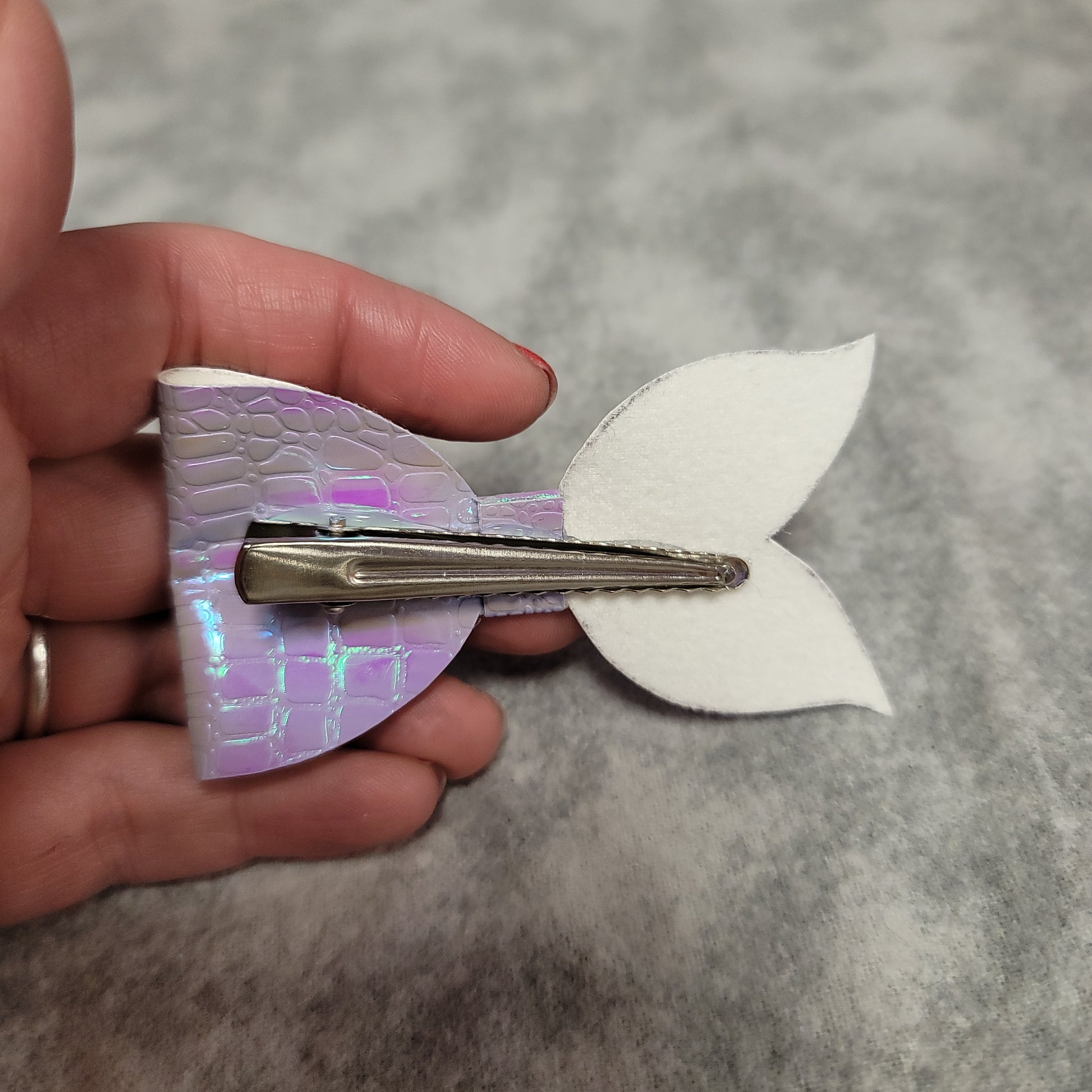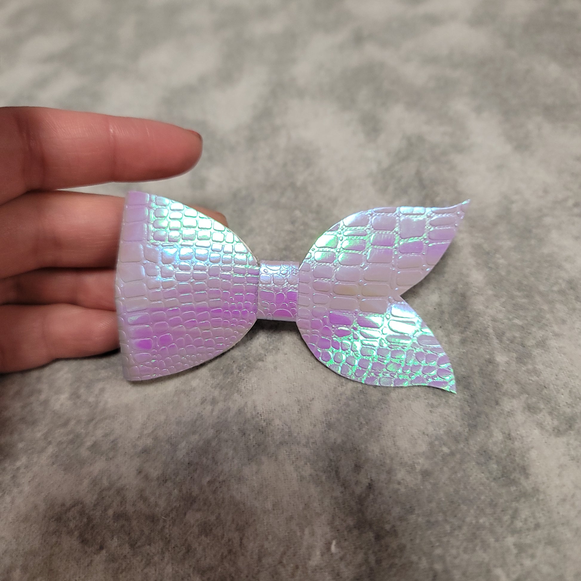 Faux leather purple iridescent mermaid tail bow.