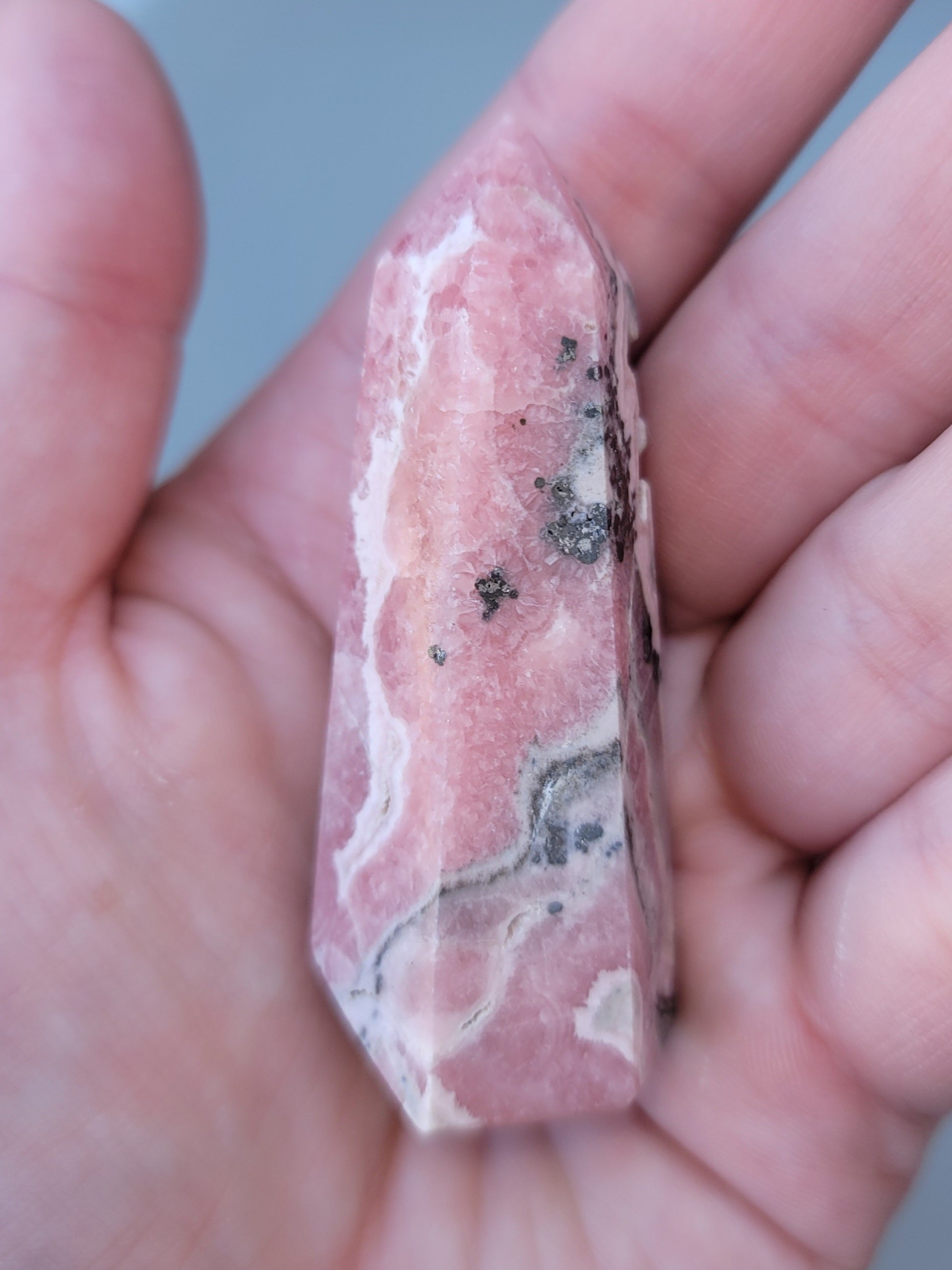 Rhodochrosite is a stone that integrates physical and spiritual energies, stimulating love and passion while energising the soul. Rhodochrosite opens the heart, lifting sadness and encouraging a positive and cheerful outlook.