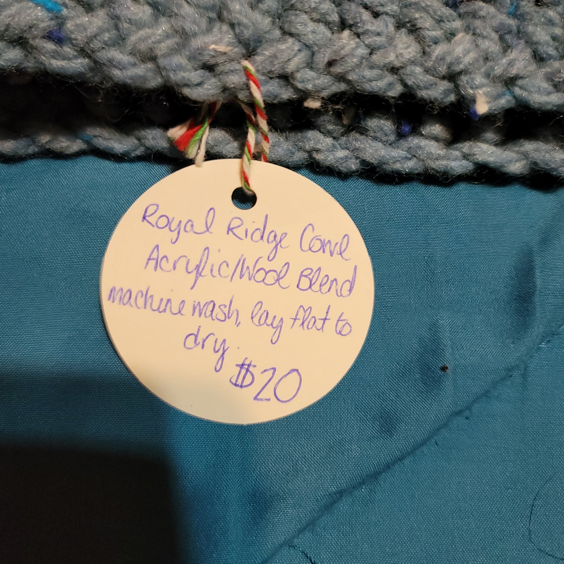 Acrylic Wool blend. Machine wash, lay flat to dry.