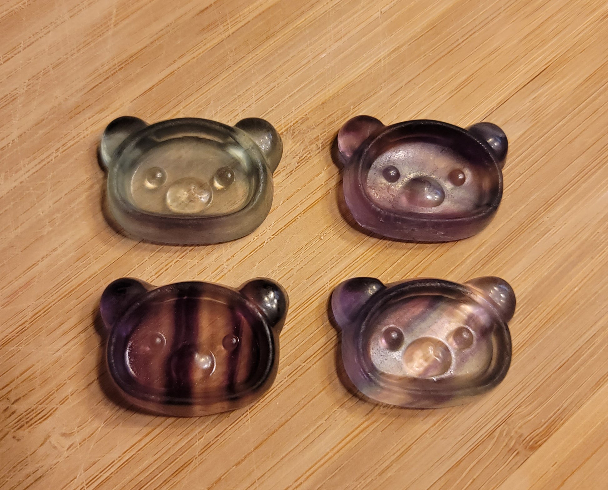 Super cute multicolor fluorite bear head carvings. Will be given at random unless requesting a certain one.
