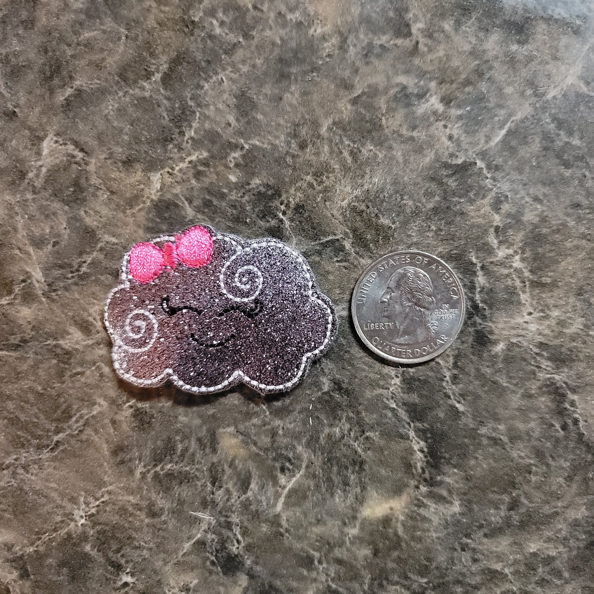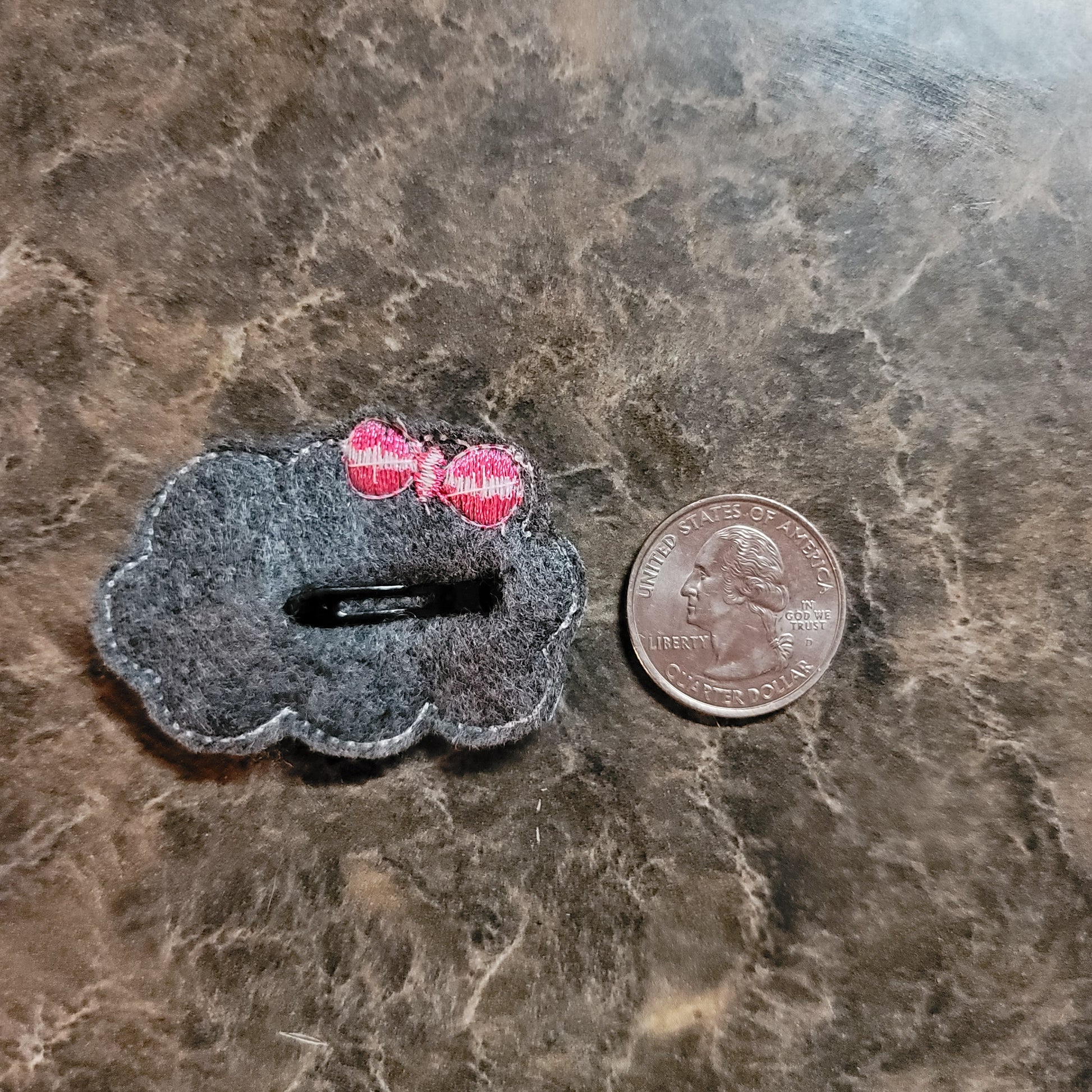 Top layer of clip is faux leather with a gray felt backing. Secured on a 1.2 inch snap clip.