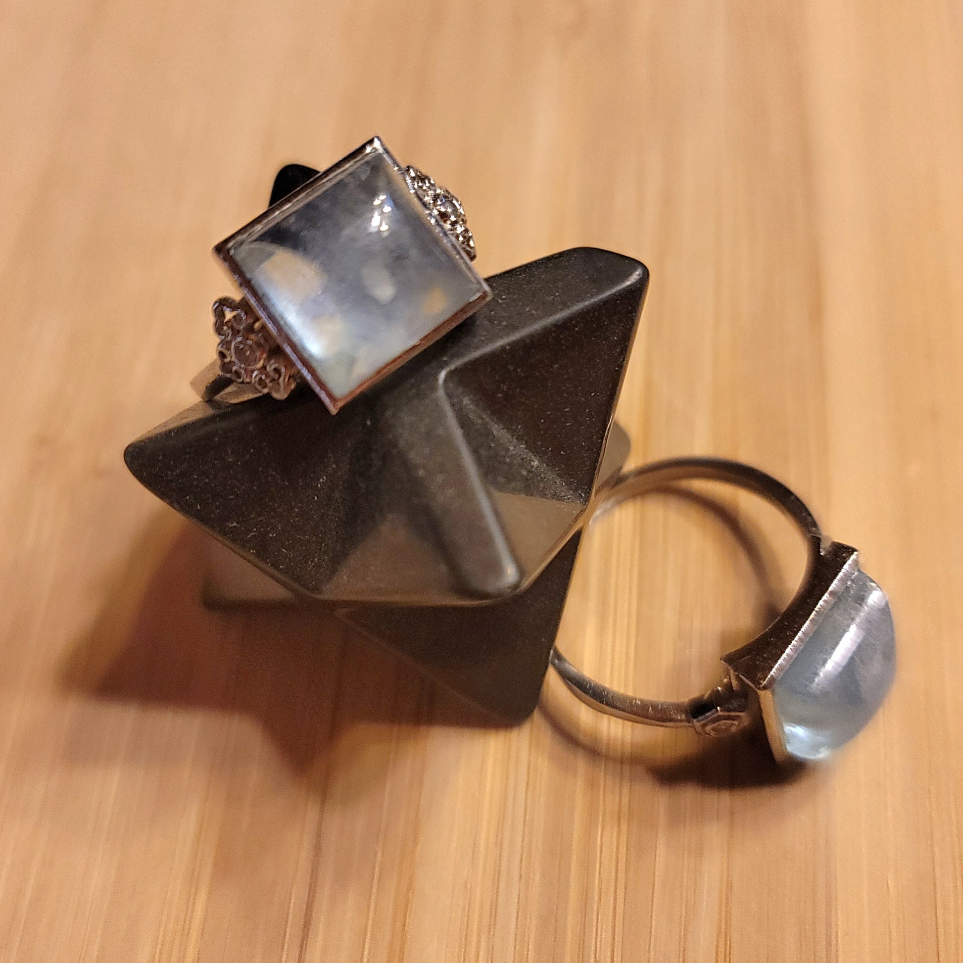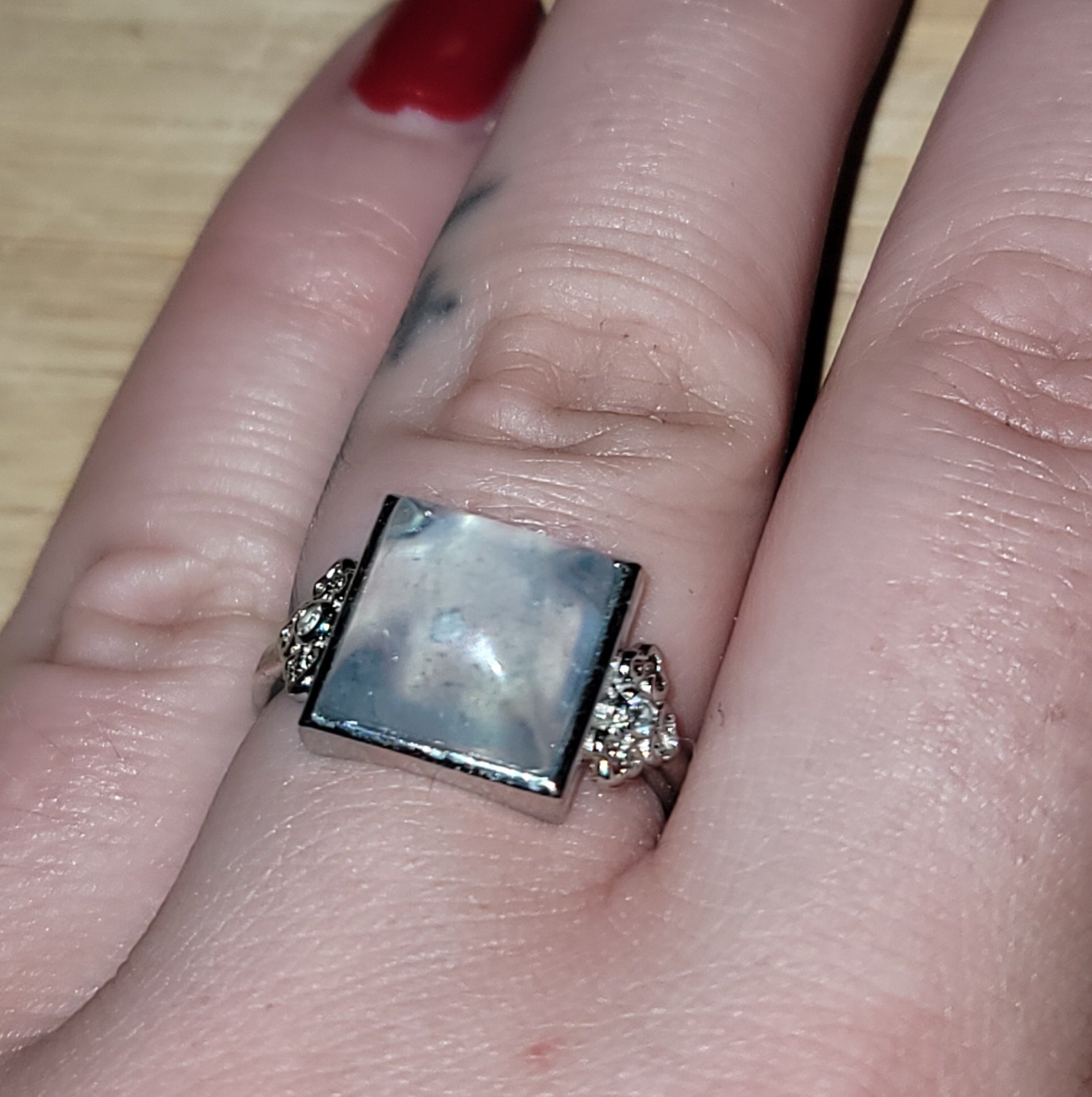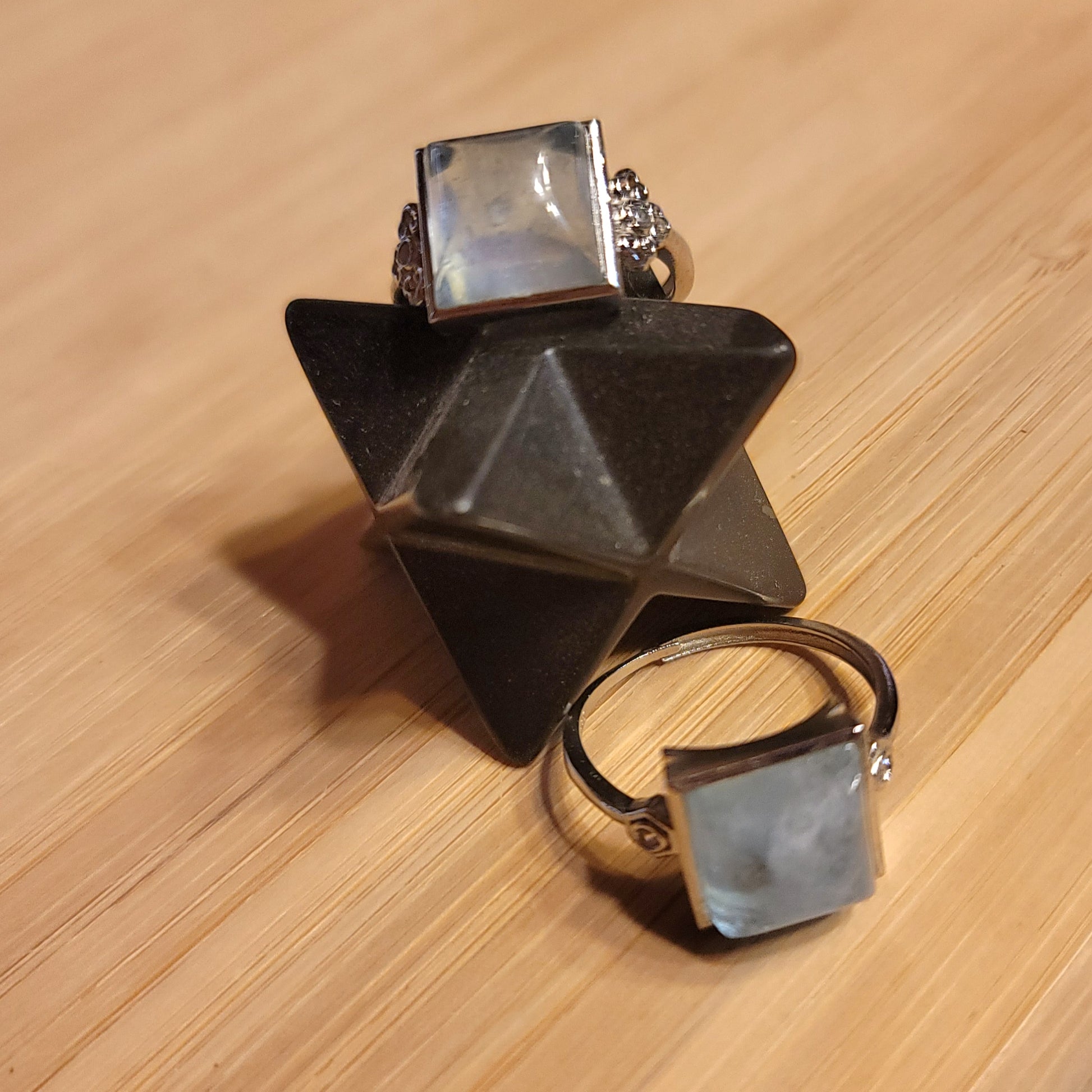 Square cut aquamarine ring. Ring is sterling silver and adjustable.