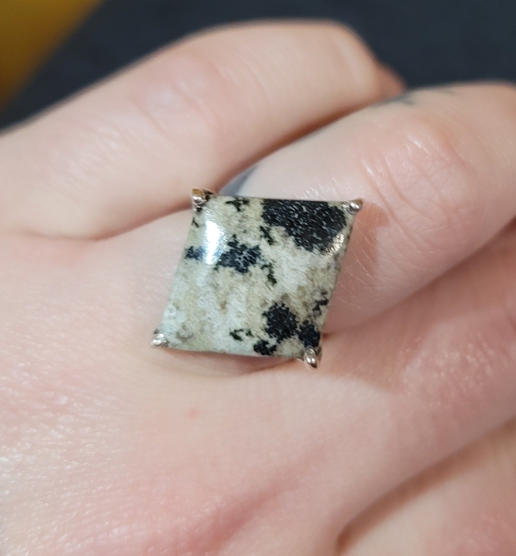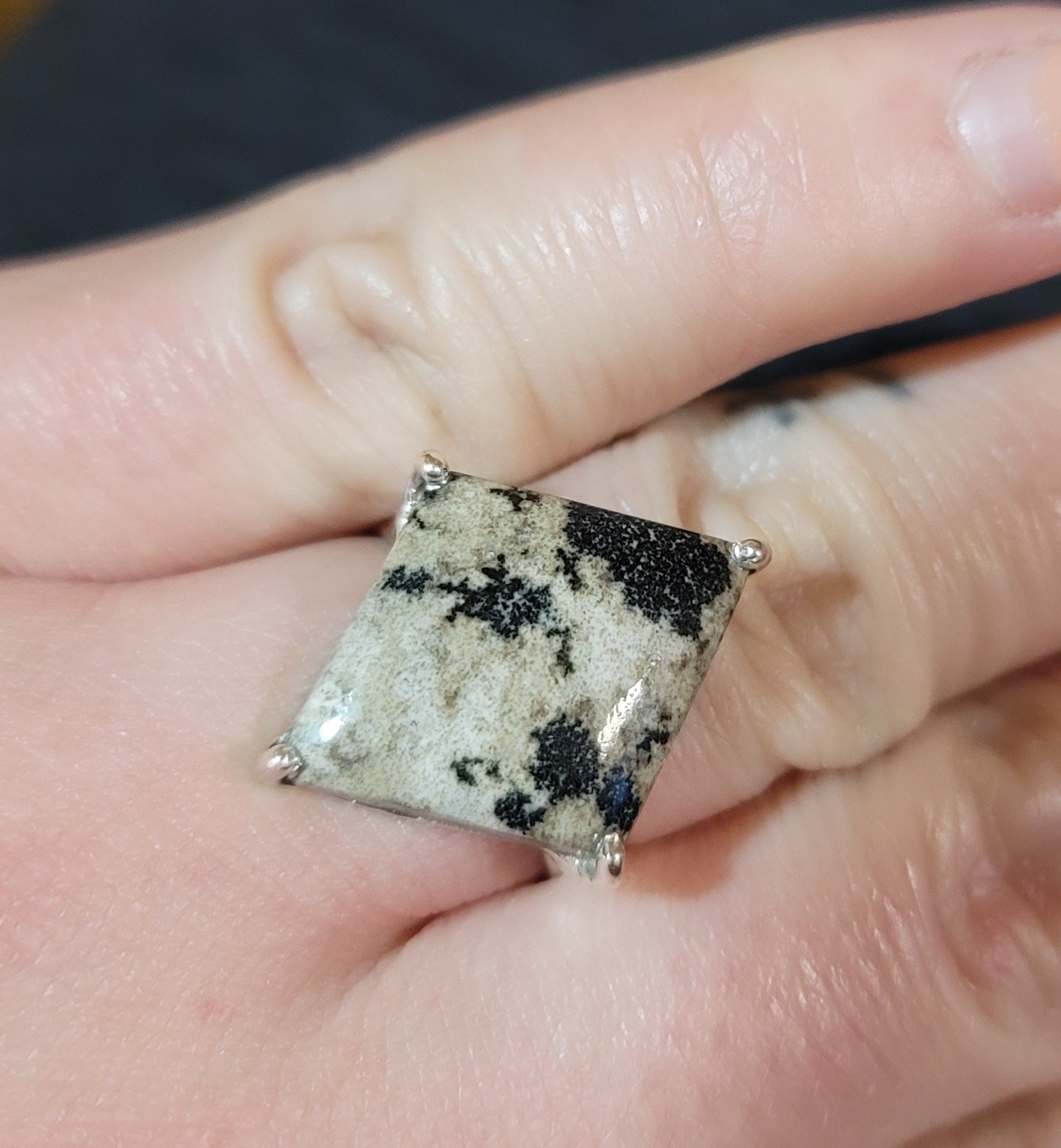 Sterling Silver Dalmatian Jasper Ring Size 7.5