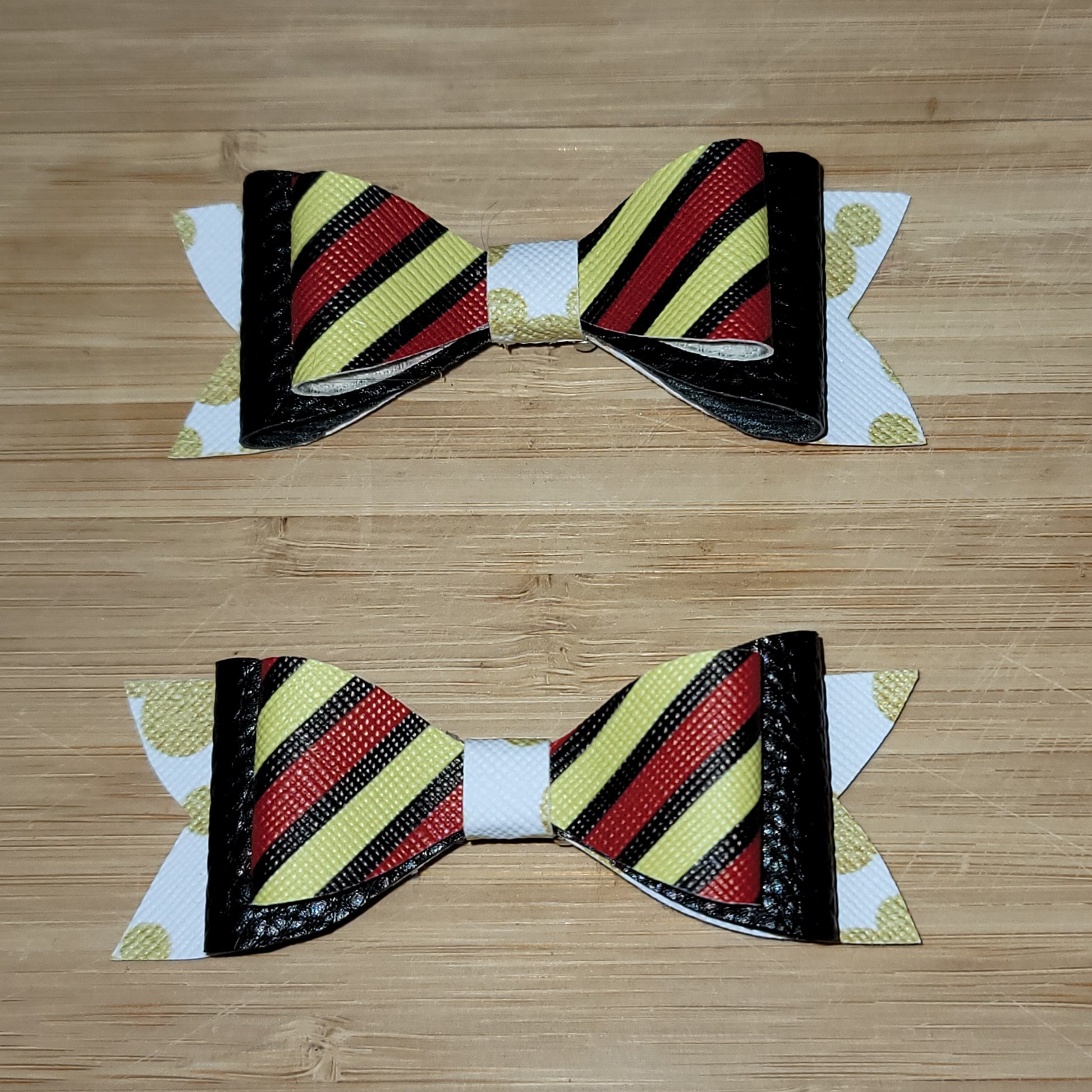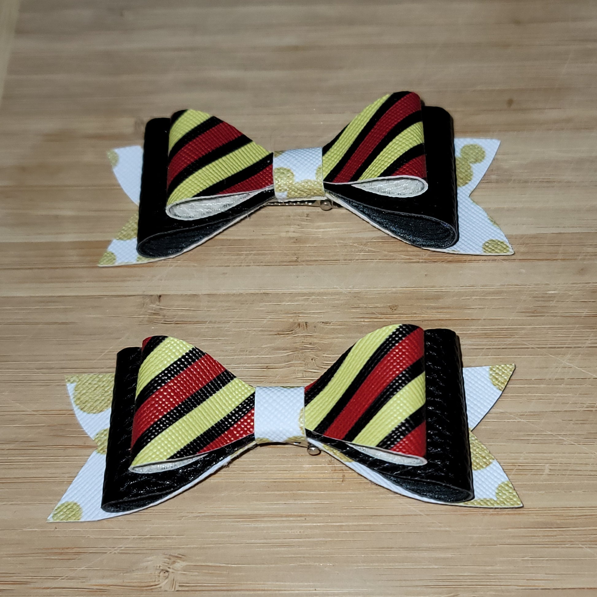 Faux leather stars, black and gold Mickey Mouse double stack small bow set secured on alligator clips.