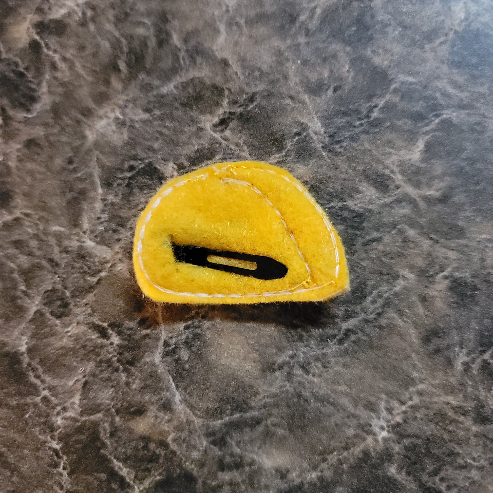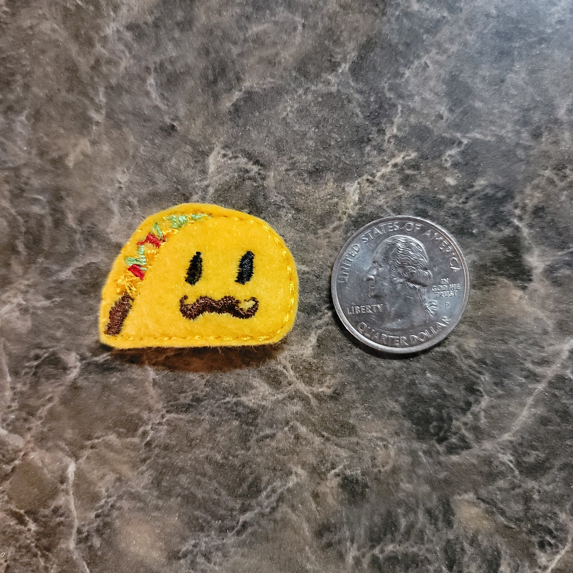 Embroidered taco feltie secured on a 1.2 inch snap clip.