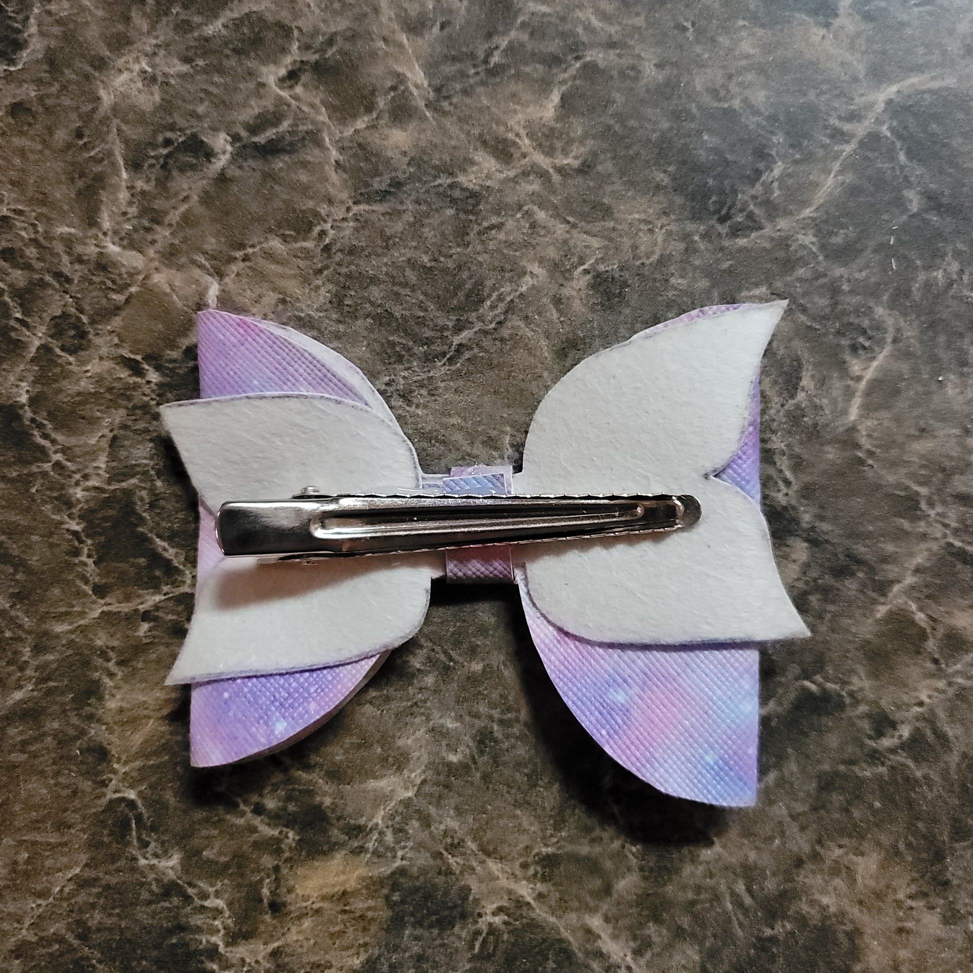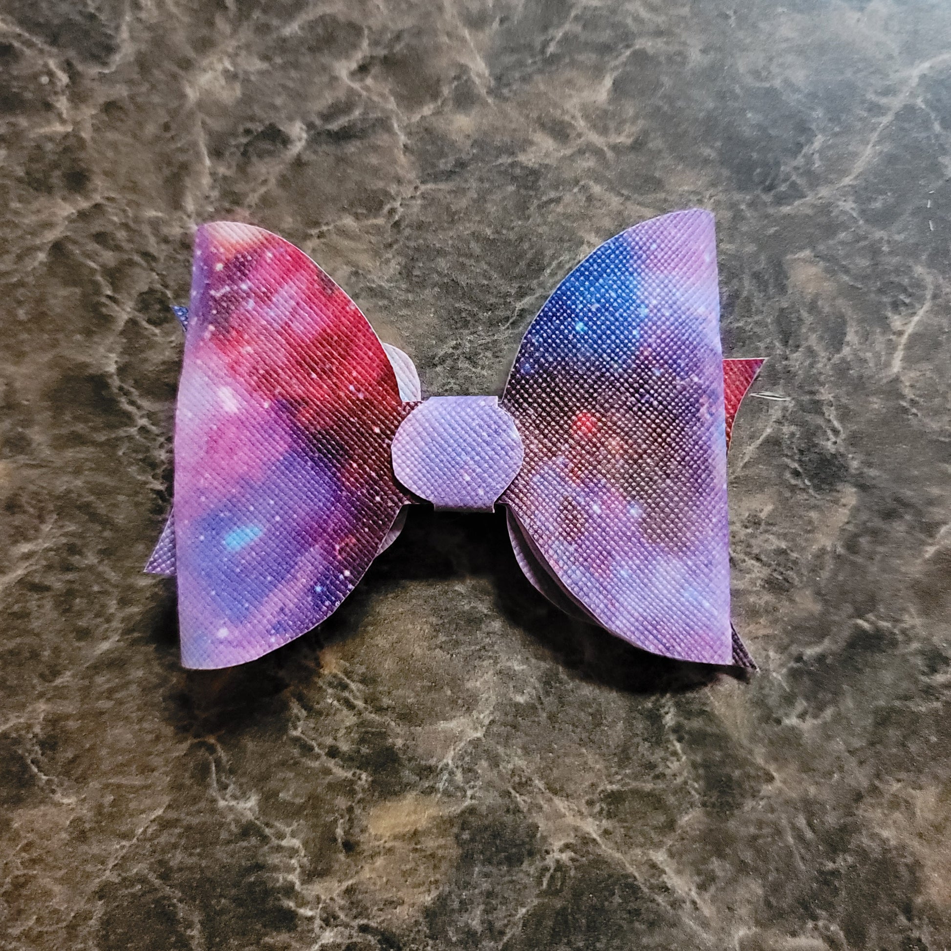 Tie dye Galaxy print faux leather. Medium bow secured on an alligator clip.