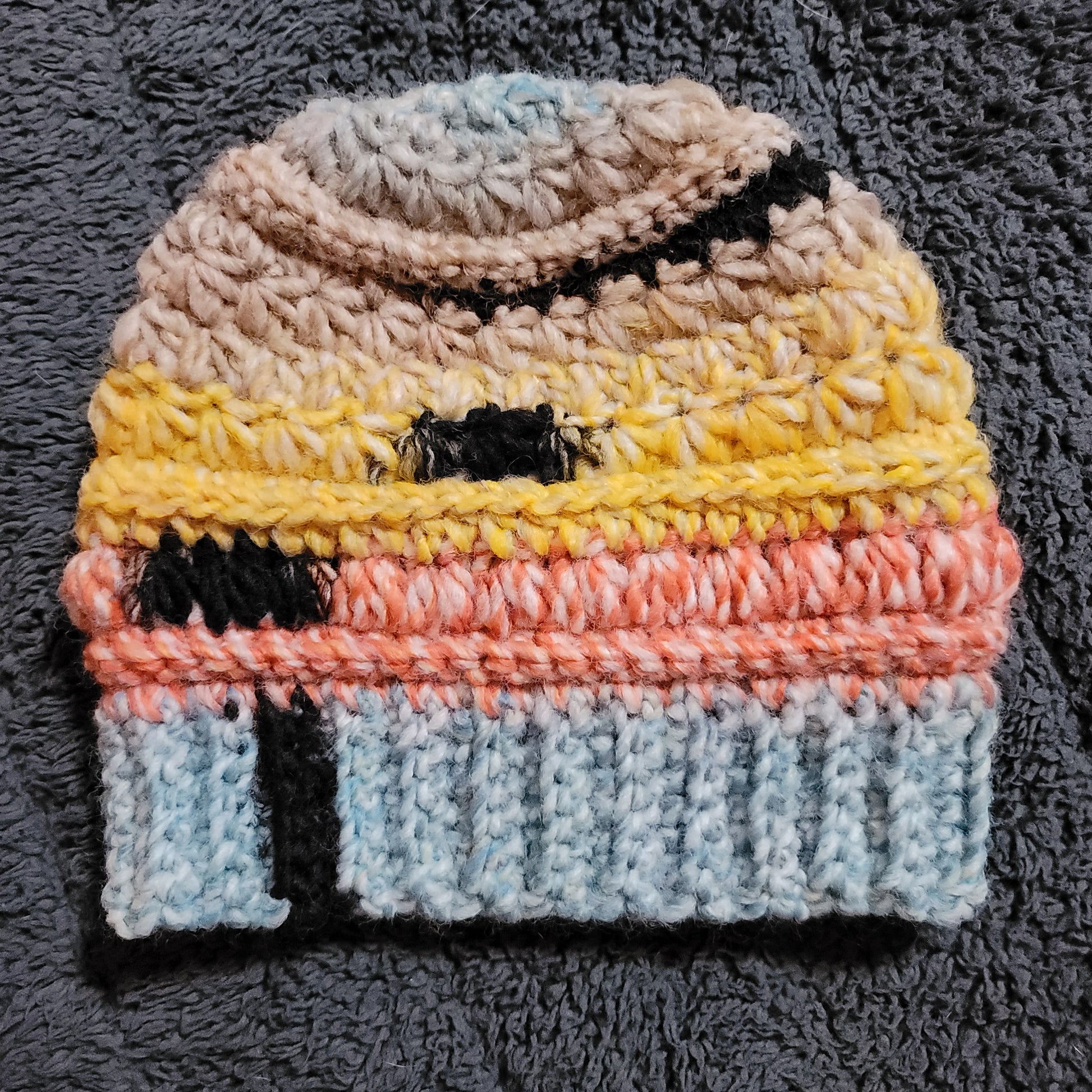 Hat measures 14.5 inch circumference across the brim with 1 inch ease for stretch. Hat height 6.5 inches.