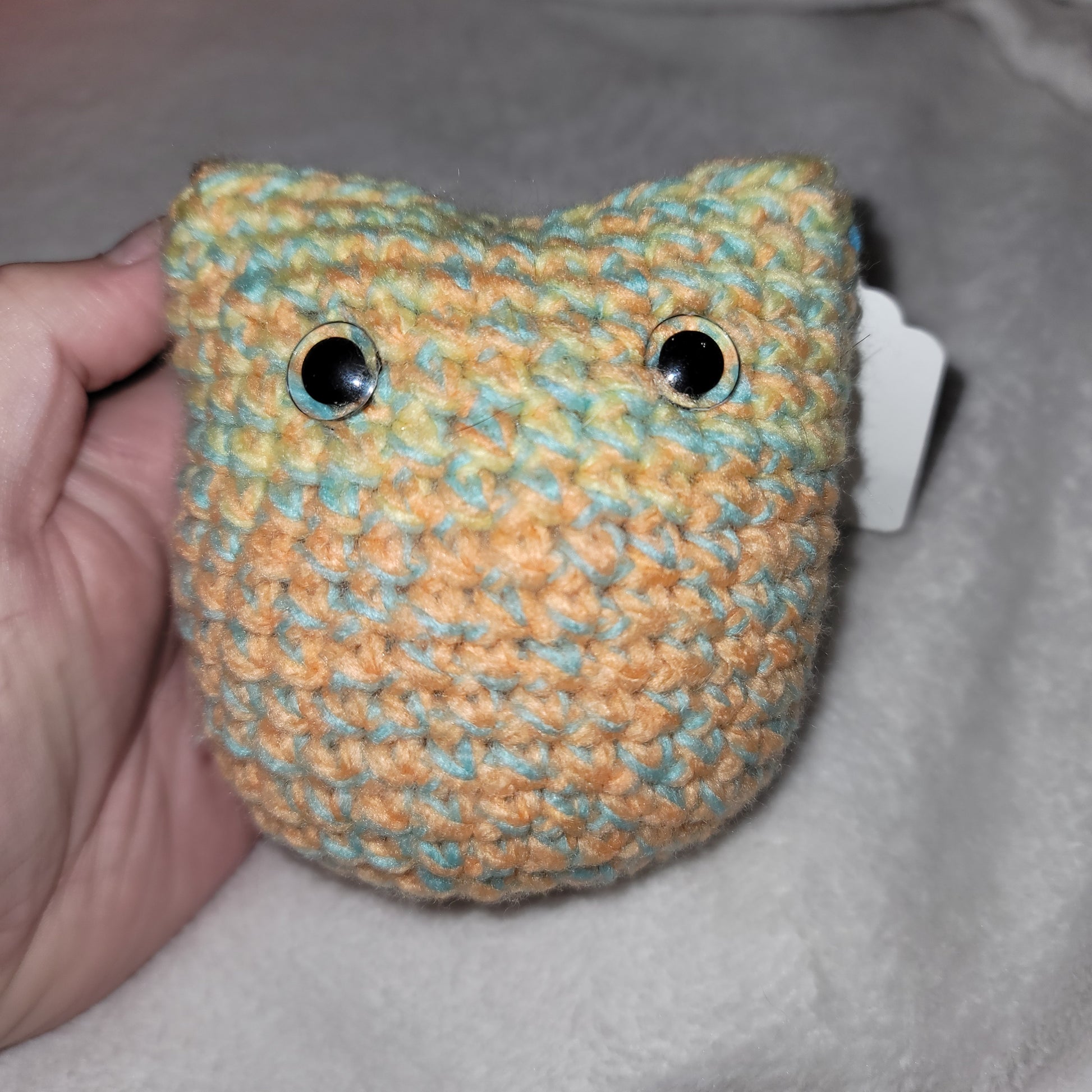 100% acrylic, machine wash and fry. Clear safety eyes.