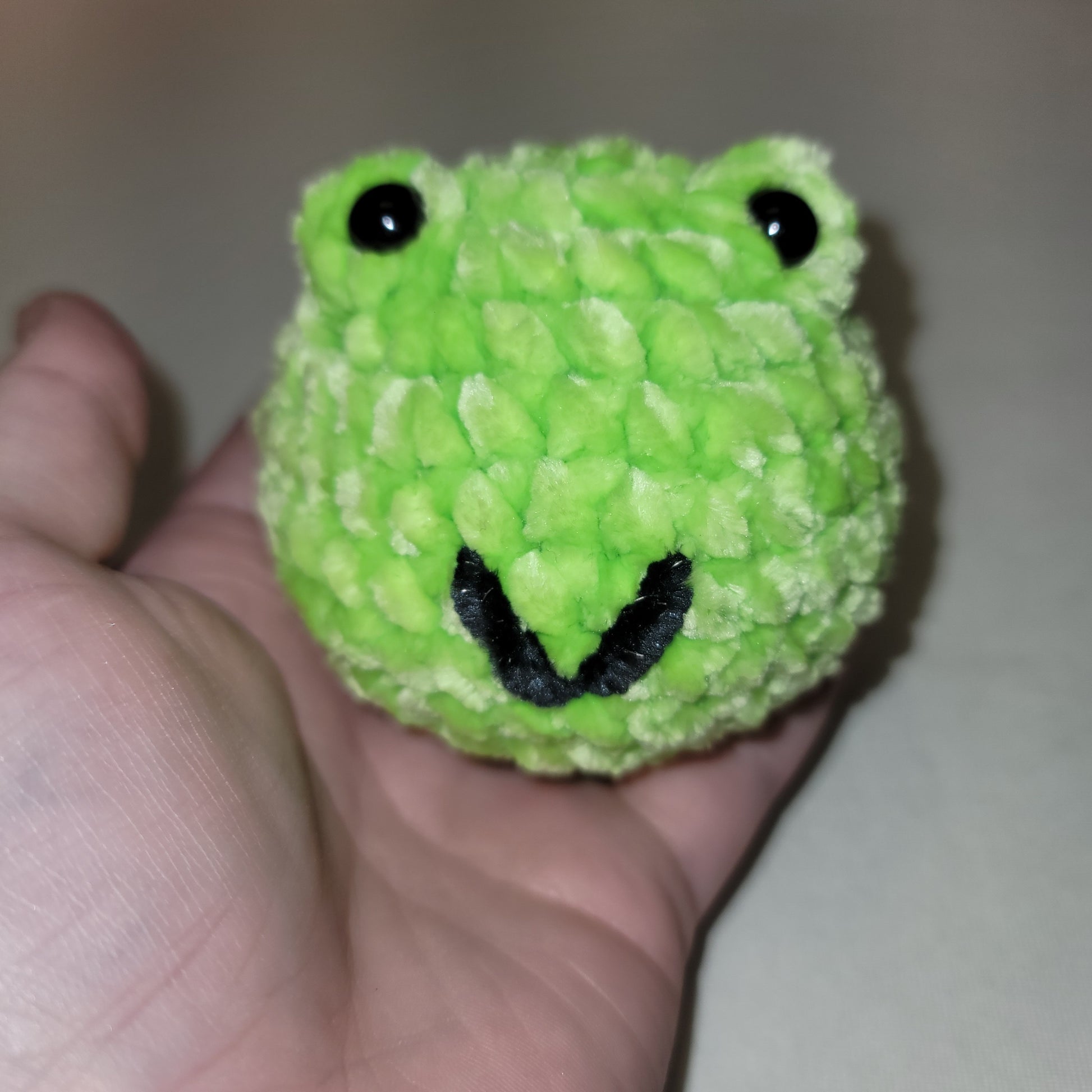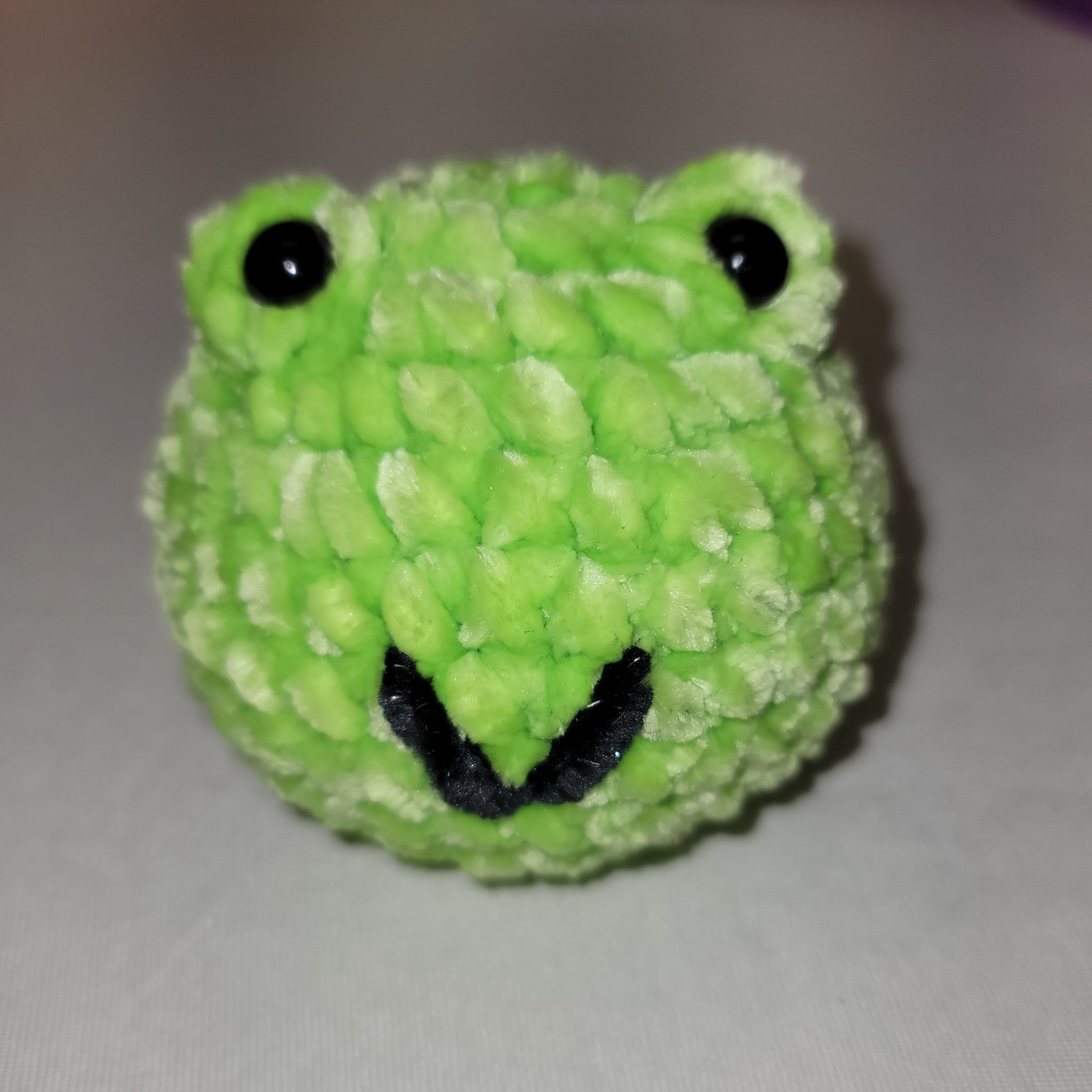 Super soft lime green velvet yarn. Eyes are safety eyes.