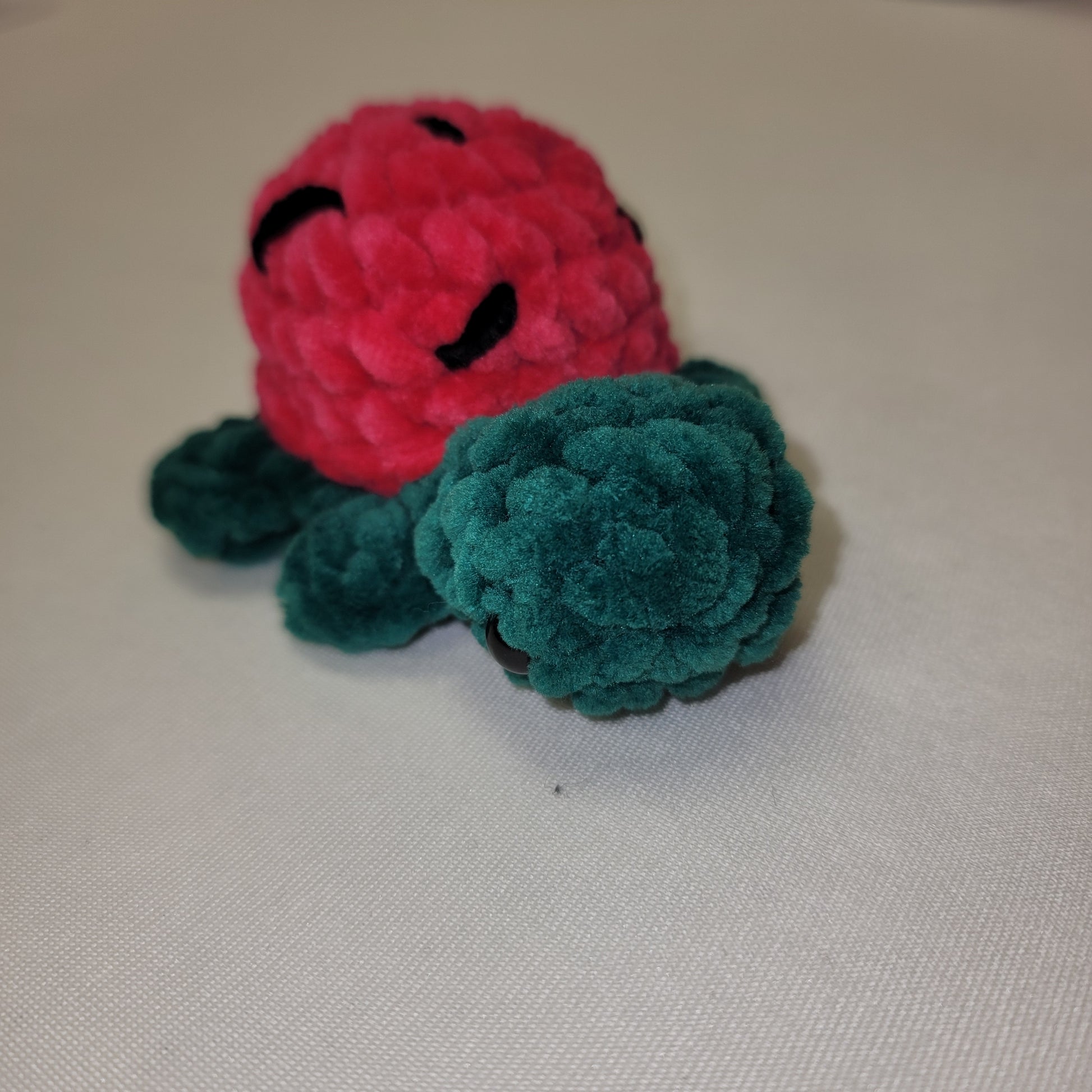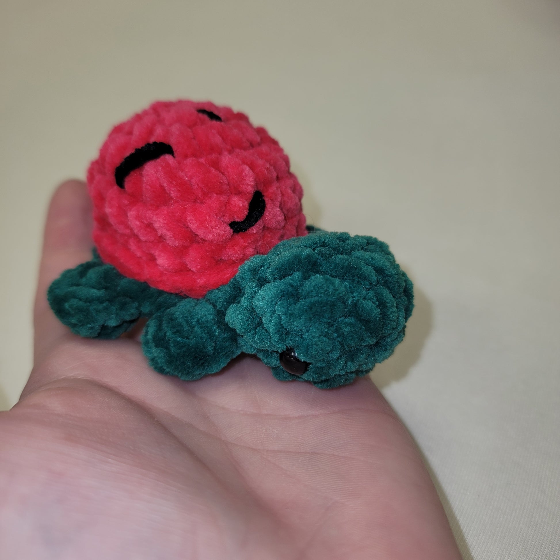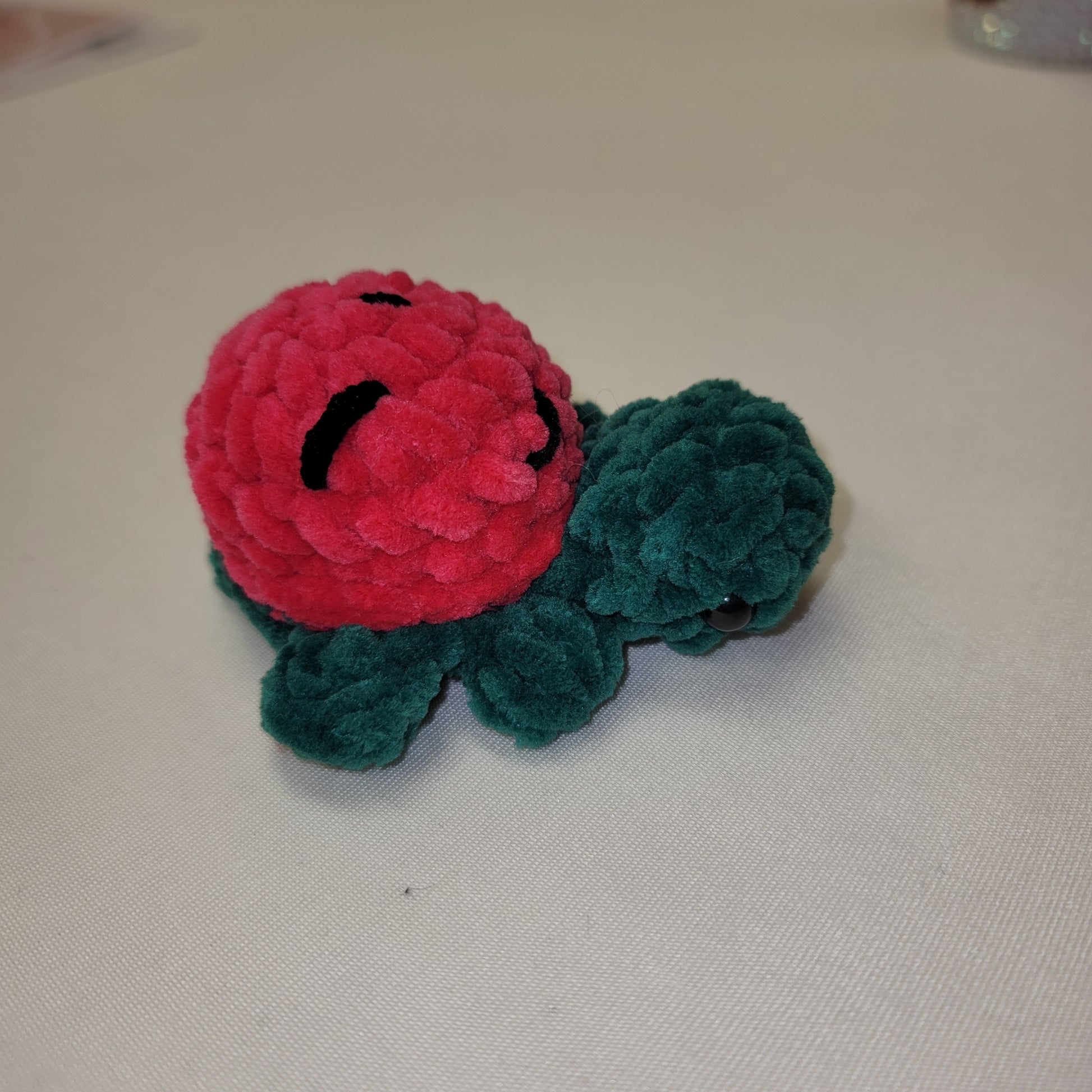 Small sized turtle. Super soft chenille yarn. Safety eyes used.